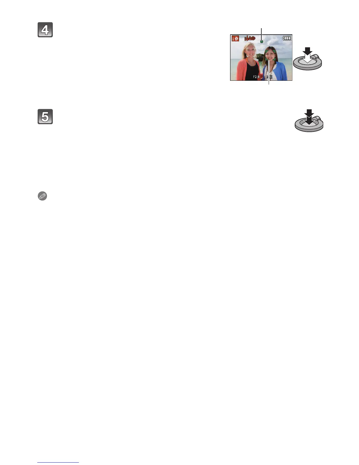 • The focus indication 1 (green) lights when the subject