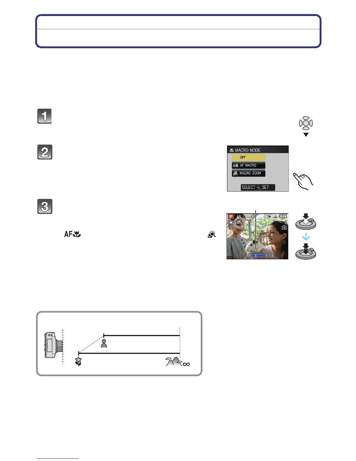 • Focus range will be 5 cm to ¶ during macro zoom mode regardless of the zoom position.