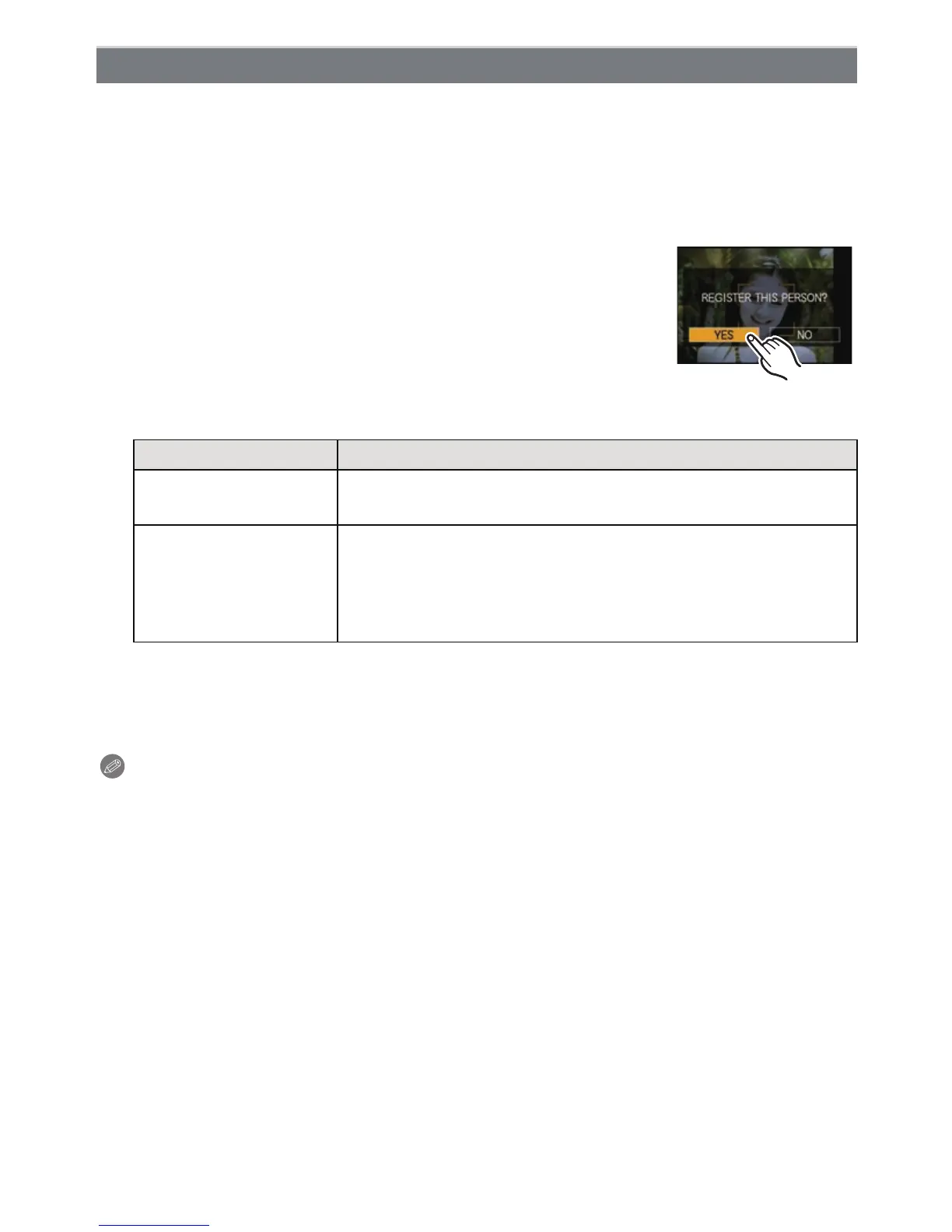 • It may be extremely hard to recognize only with [AUTO REGISTRATION], so register the face