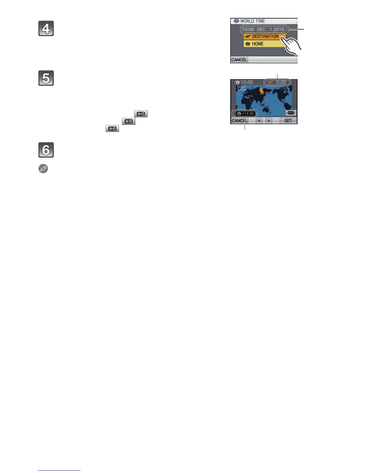 • If you cannot find the travel destination in the areas displayed on the screen, set by the time