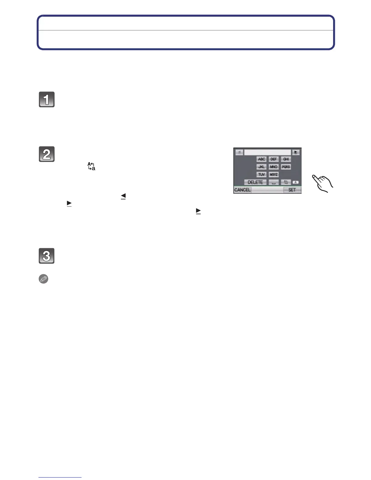 • To enter a blank, touch []], or to delete an entered character, touch [DELETE].