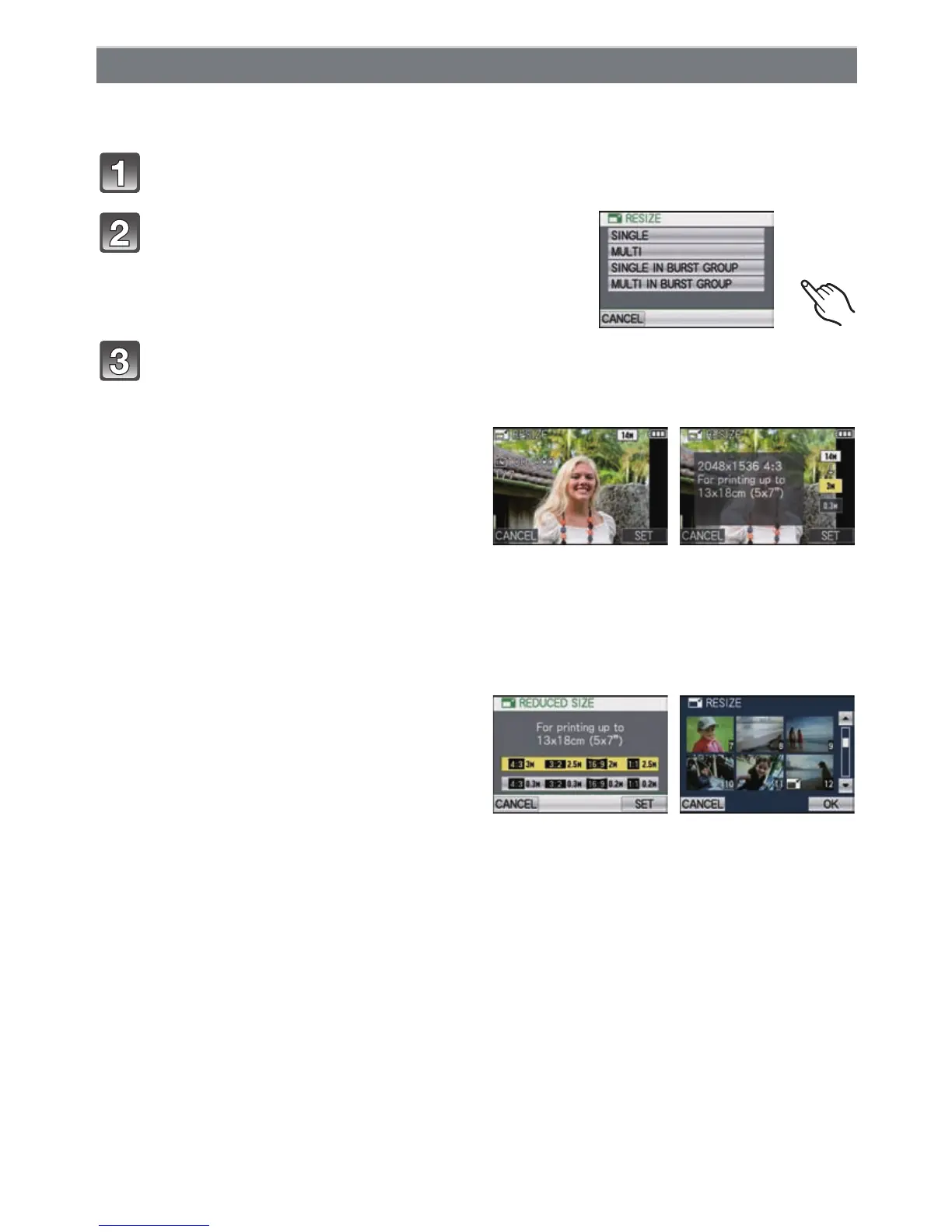 Select [RESIZE] on the [PLAYBACK] Mode menu. (P23)