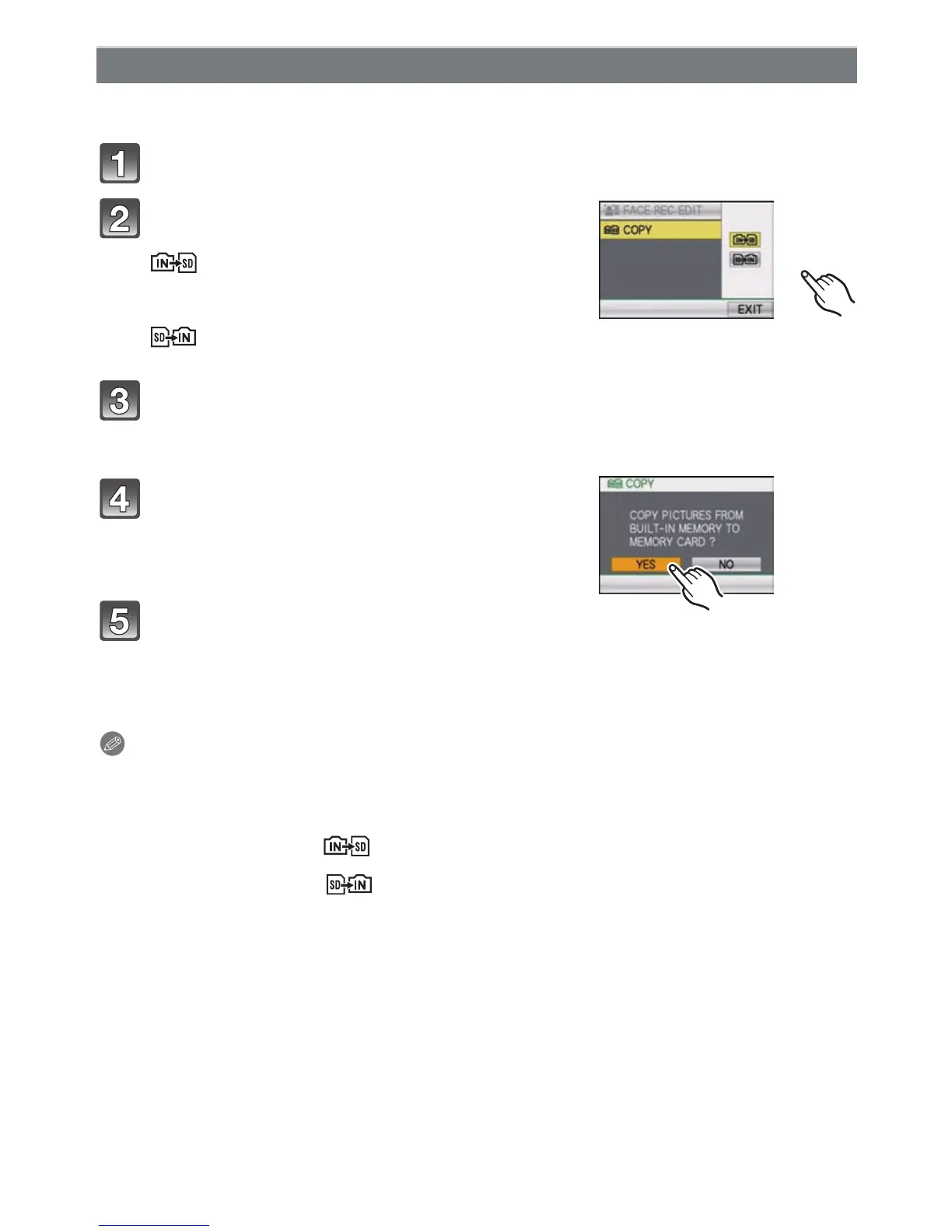 • Only pictures recorded with a Panasonic digital camera (LUMIX) will be copied.