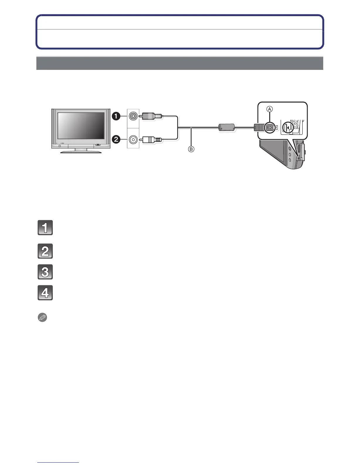 Connect the AV cable B (supplied) to the video input and the audio