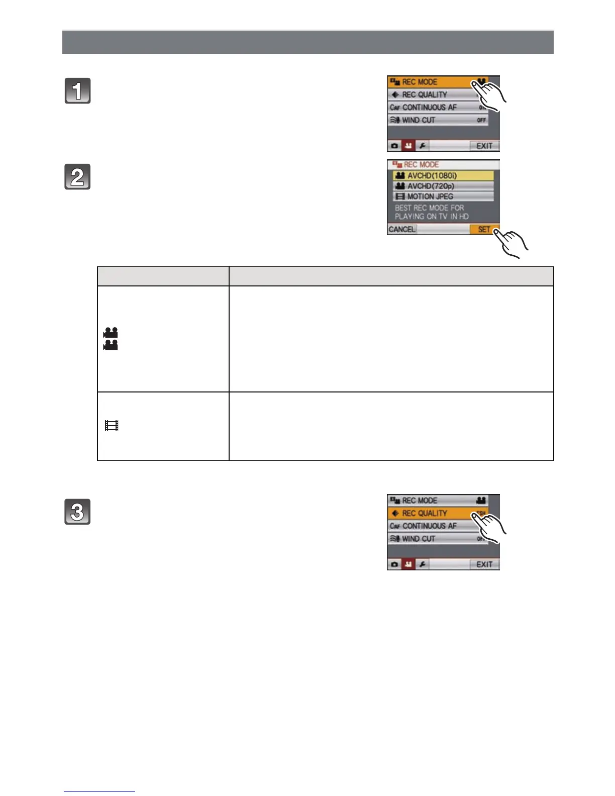 • [AVCHD(1080i)] can record motion pictures with even higher