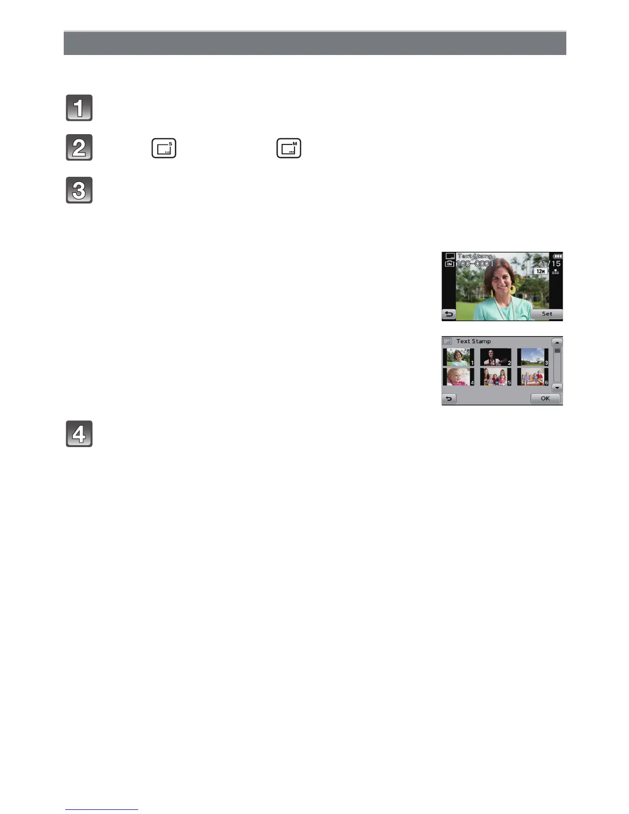 Select [Text Stamp] on the [Playback] Mode menu. (P36)