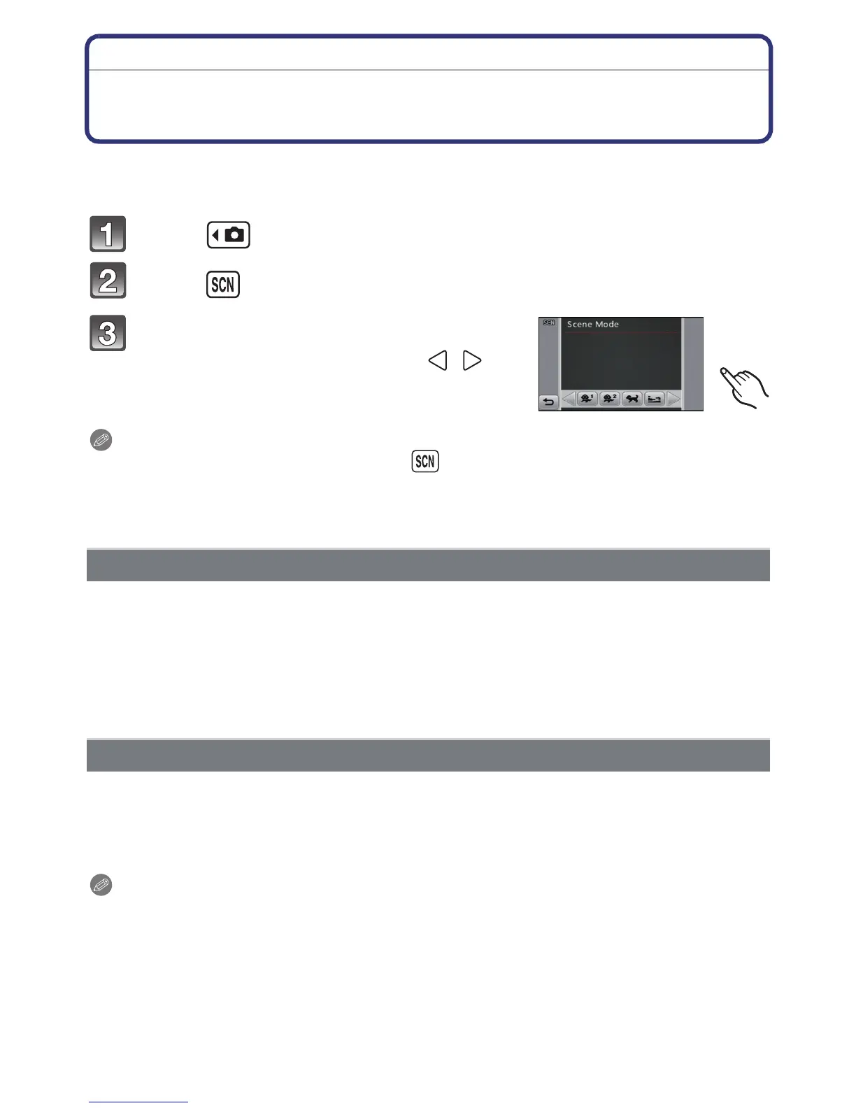 Scene Modes can be changed by touching [ ] from the menu screen.