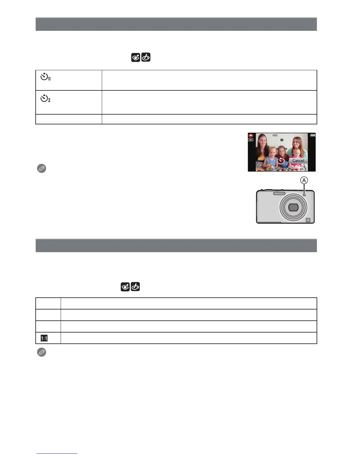 • We recommend using a tripod when recording with the self-timer.