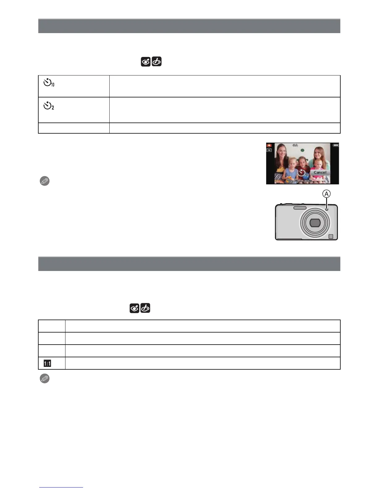• We recommend using a tripod when recording with the self-timer.