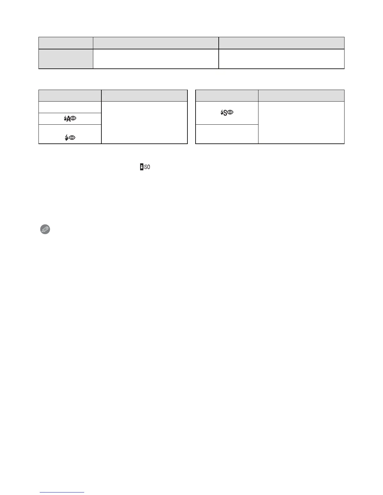 Flash setting Shutter speed (Sec.) Flash setting Shutter speed (Sec.)