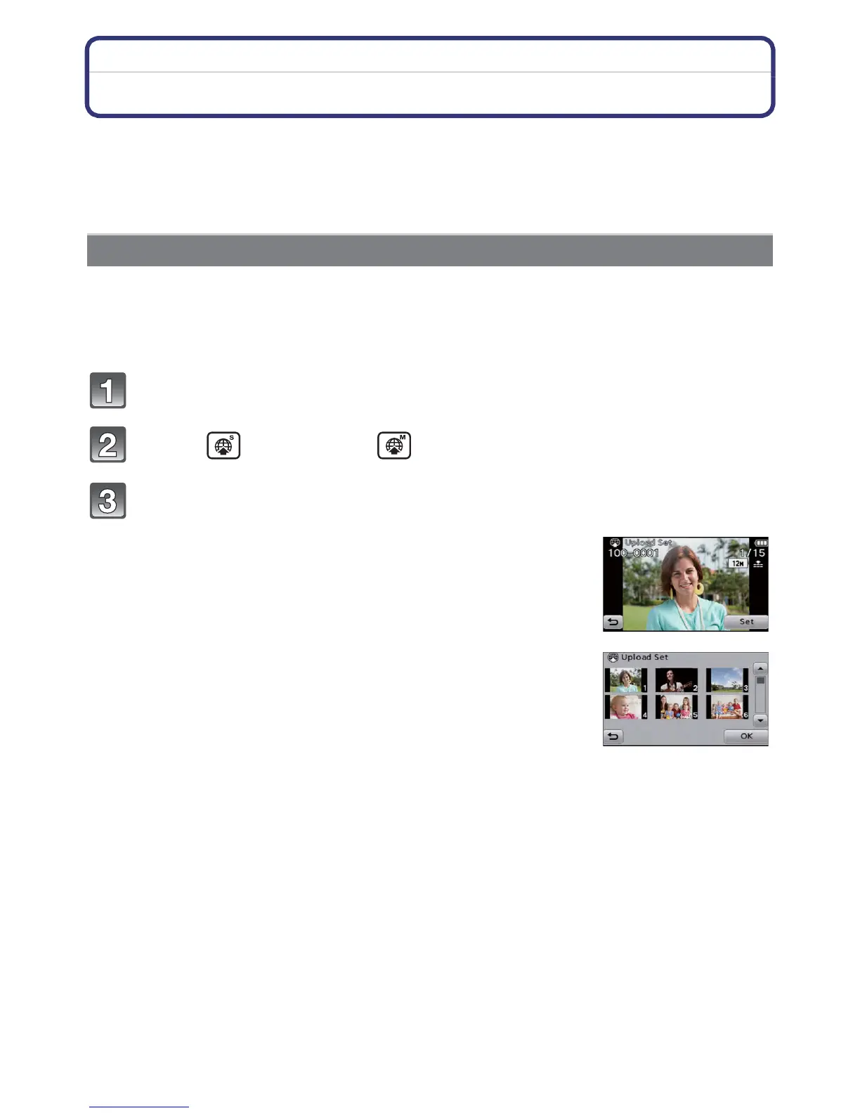 Select [Upload Set] on the [Playback] Mode menu. (P36)
