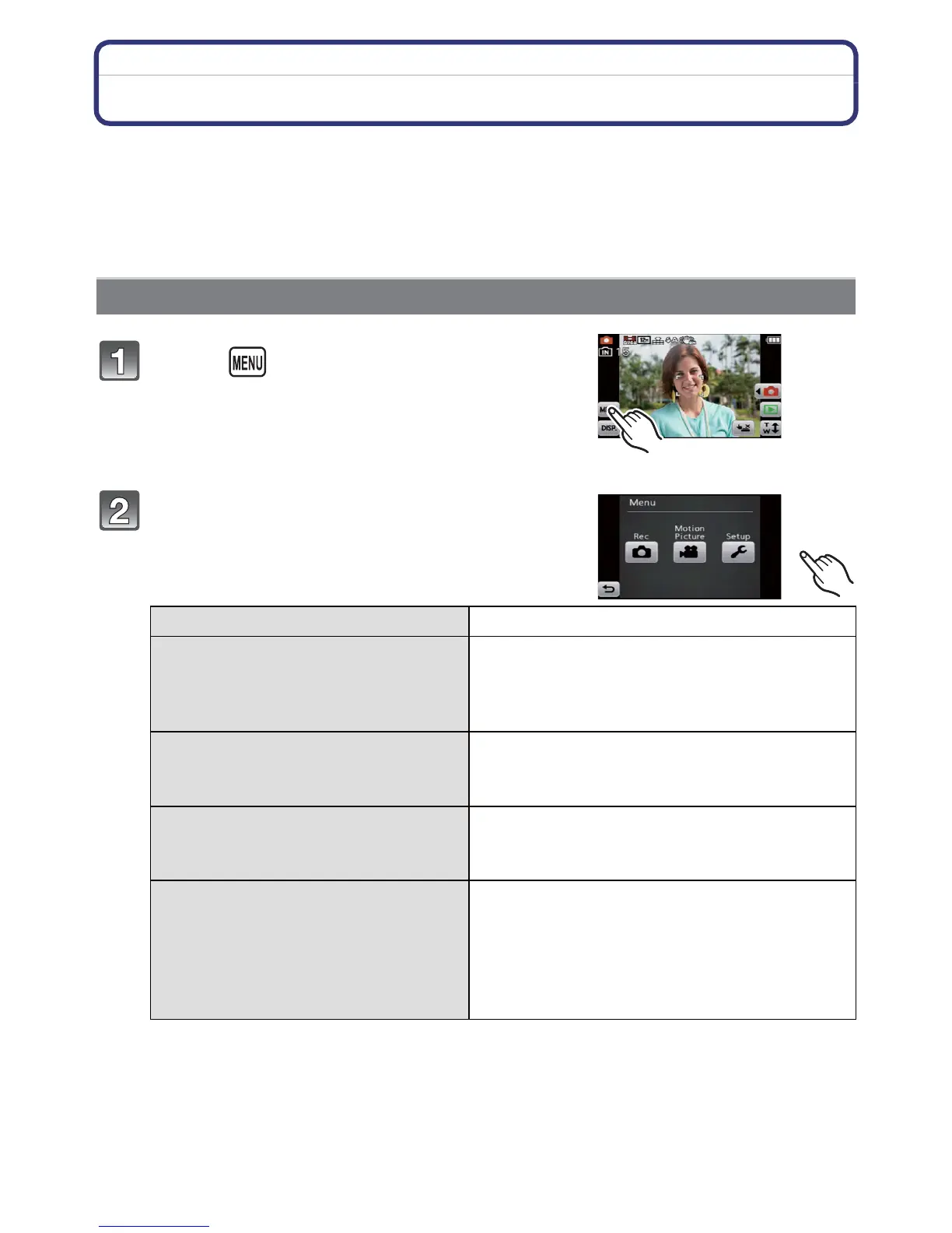 This menu lets you set the [Rec Mode], [Rec