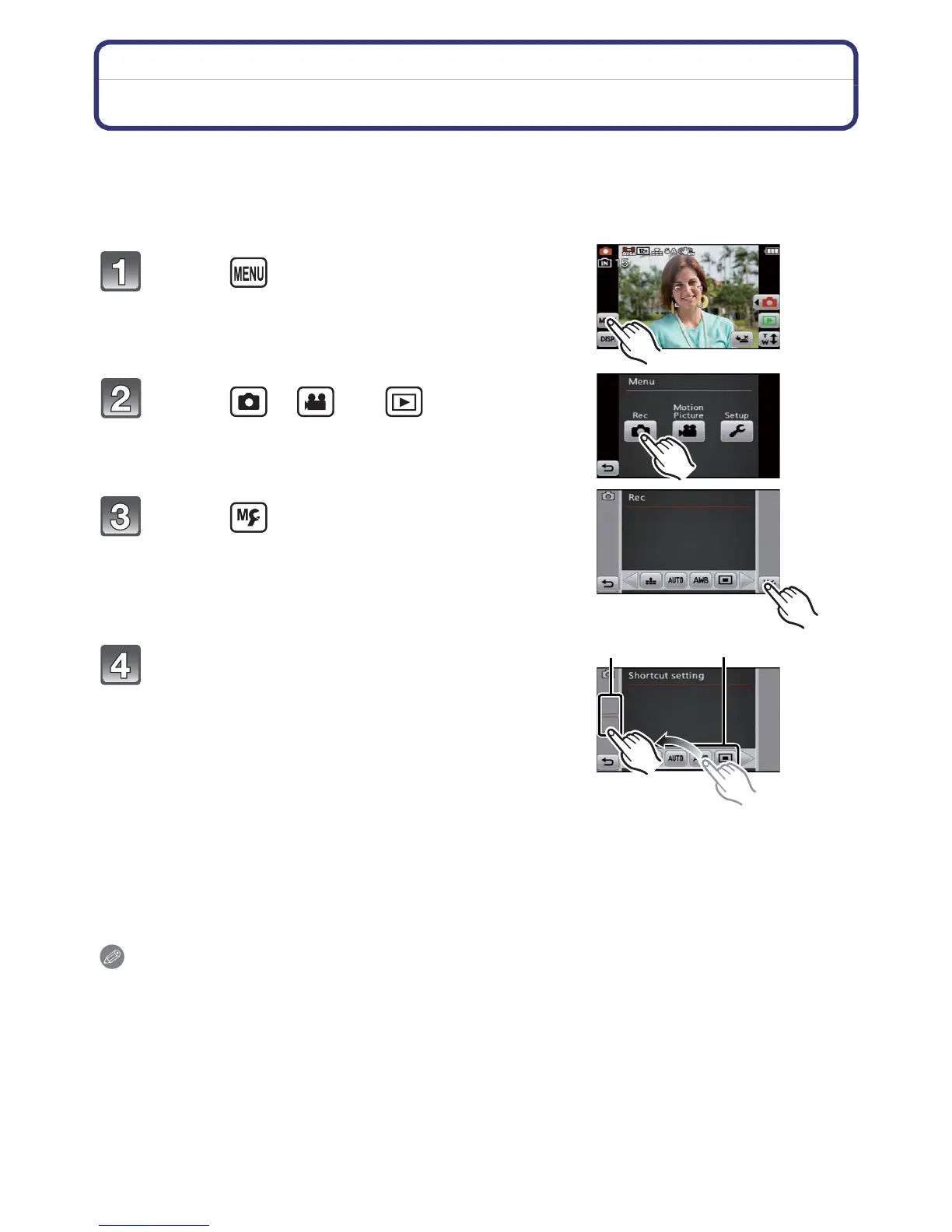 Up to 2 frequently-used menu items can be registered per Recording/Playback Mode.