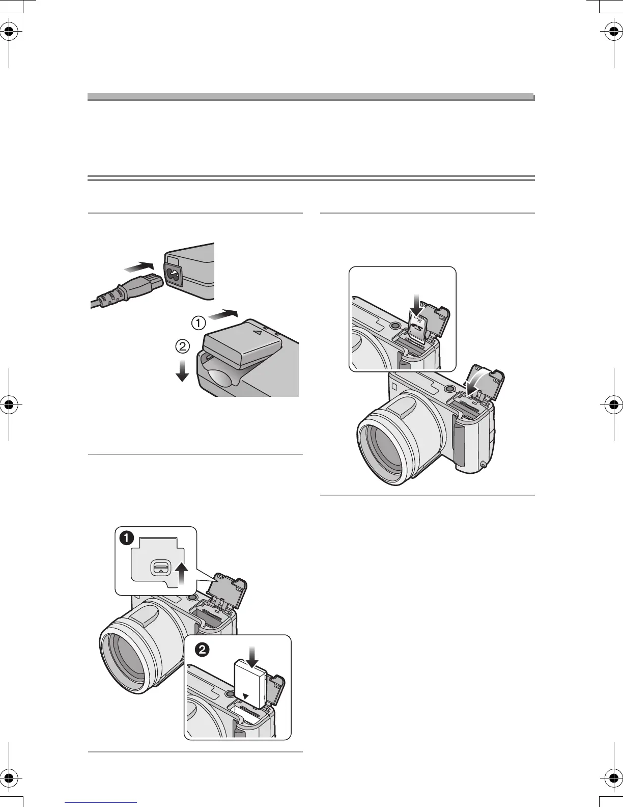 • Prepare la cámara, el cable de CA, la batería, el adaptador de CA y la tarjeta.