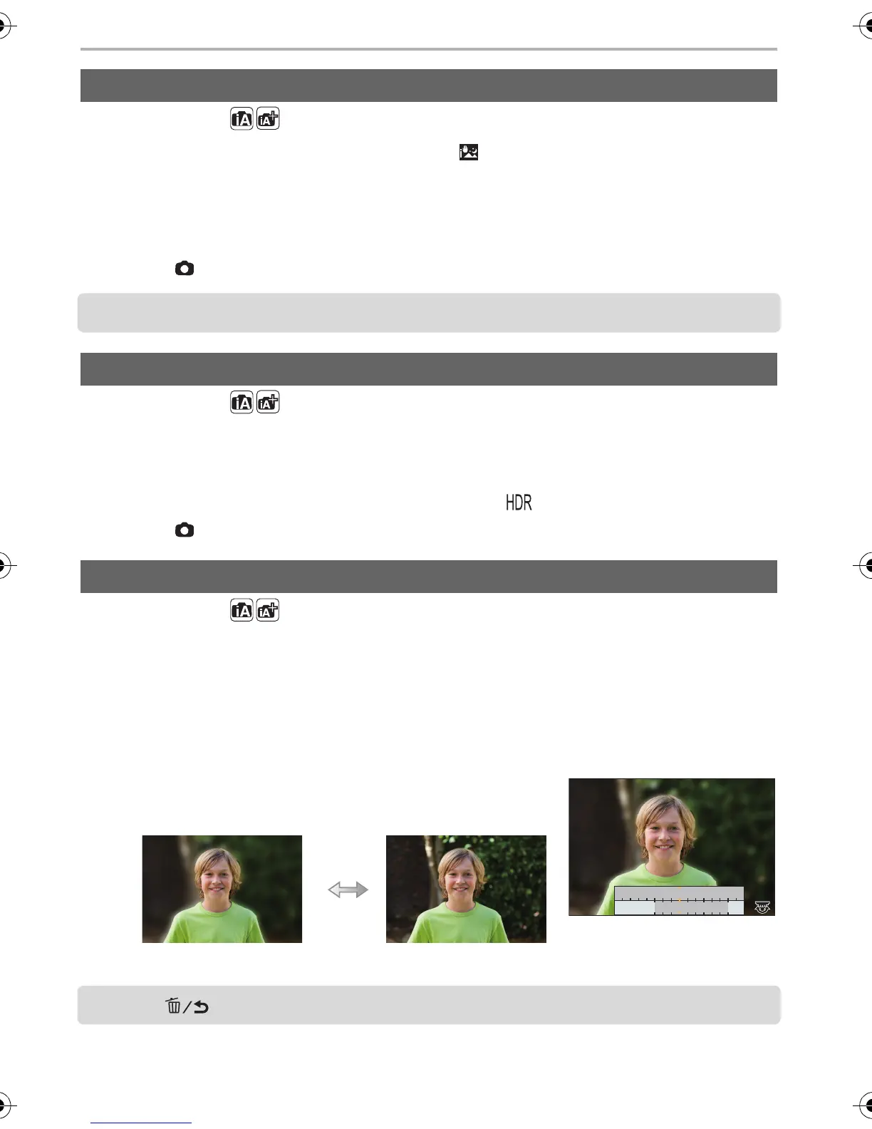 [iHDR] works automatically as needed. When it does, [ ] is displayed on the screen.