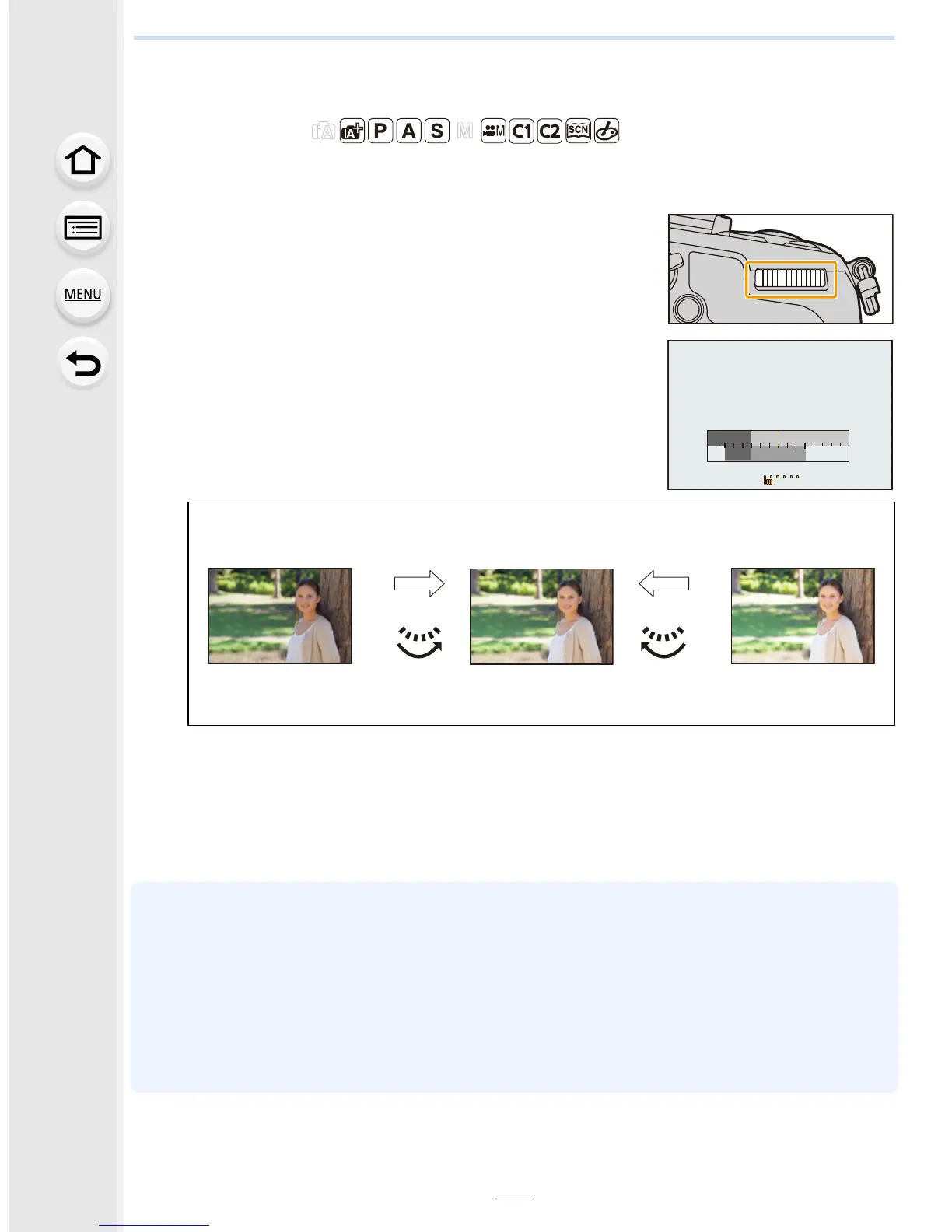 • The set exposure value is memorized even if the camera is turned off. (When [Exposure Comp.