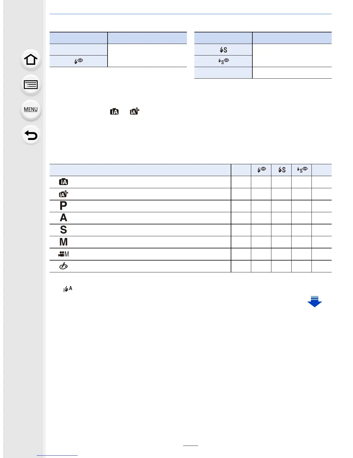 ∫ Available flash settings by Recording Mode