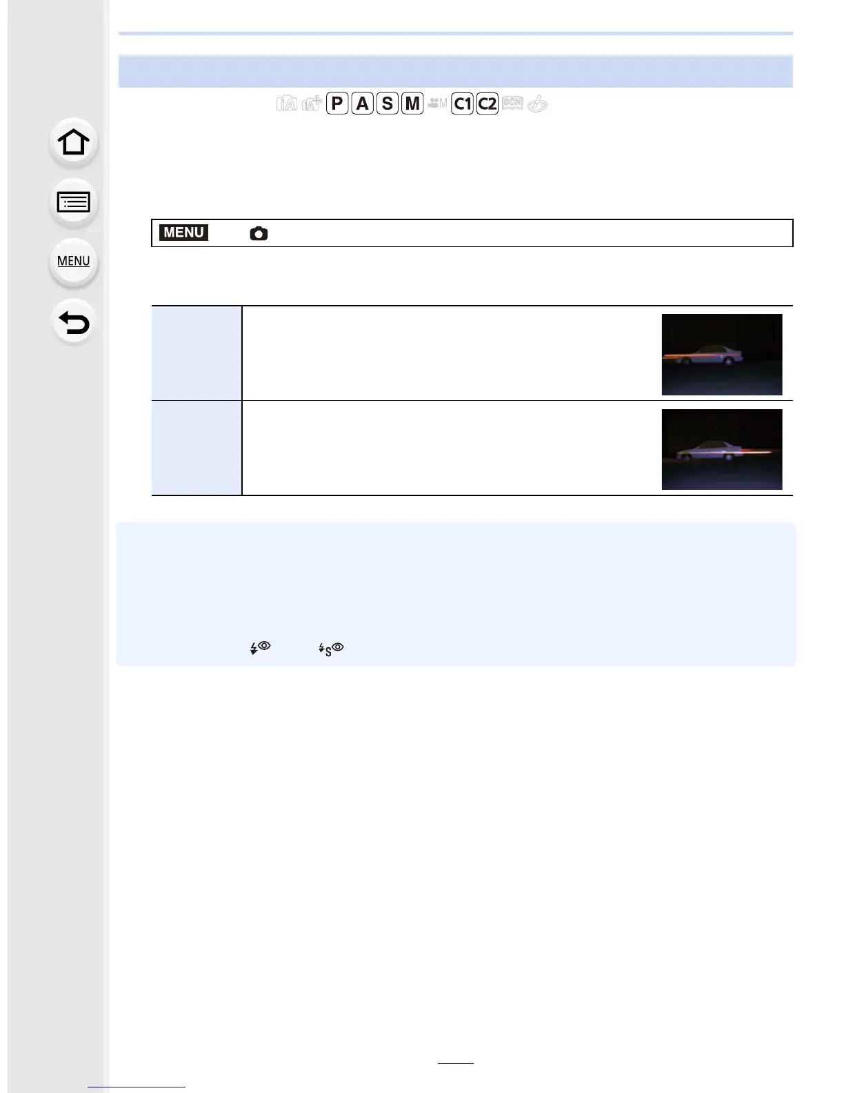 • The [Flash Synchro] settings also apply to an external flash. (except the wireless flash) (P319)