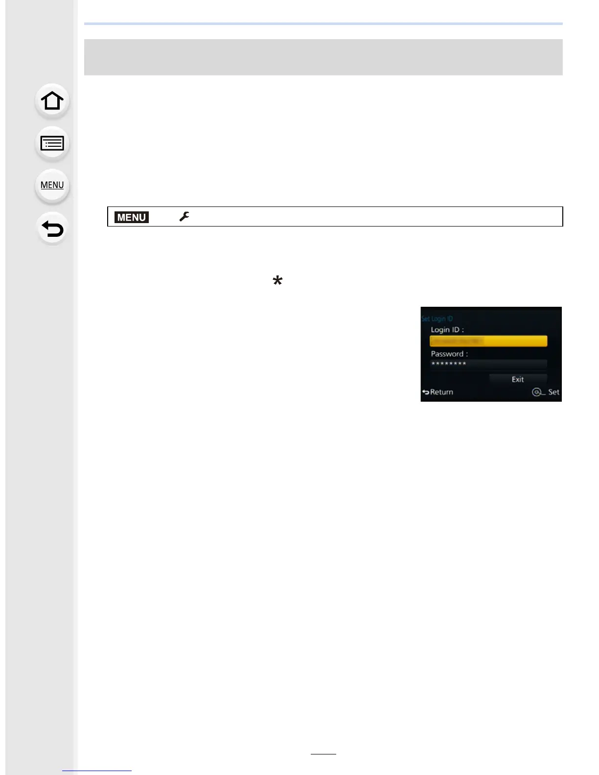 The login ID and password registered to the “LUMIX CLUB” cannot be changed on this unit.