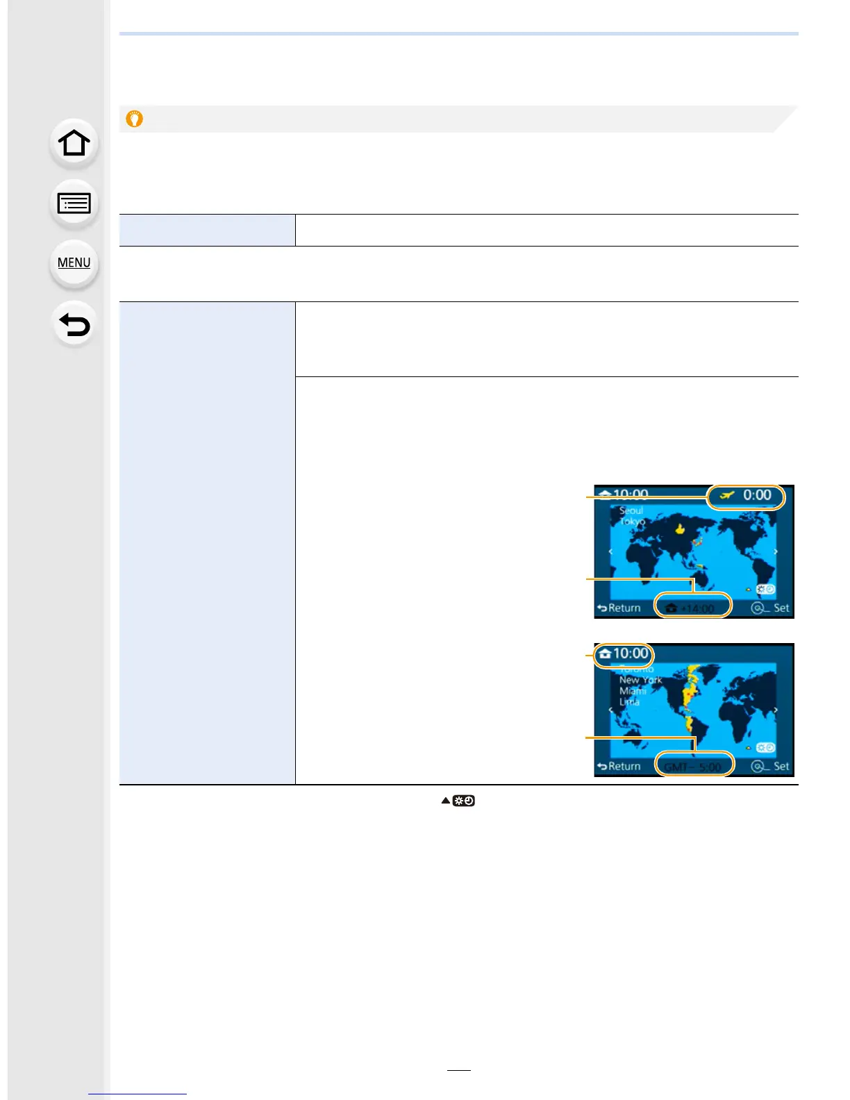 • If you cannot find the travel destination in the areas displayed on the screen, set by the time