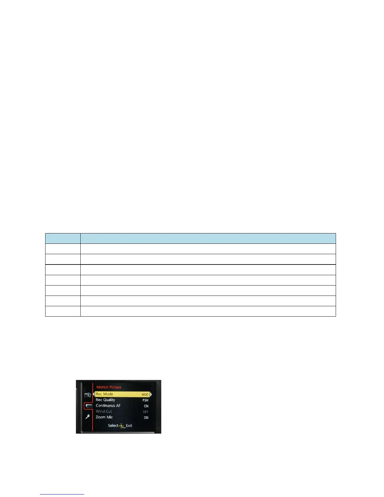 Video “Rec Mode” and “Rec Quality” are both adjusted in the “Motion