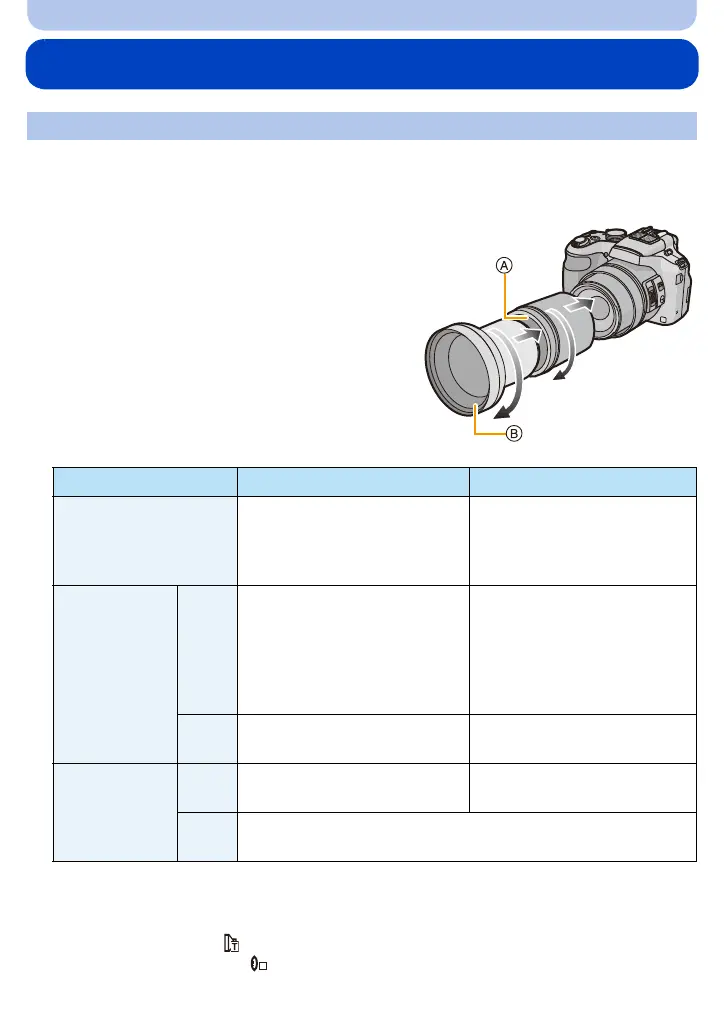 Preparations: Remove the lens cap and lens hood.