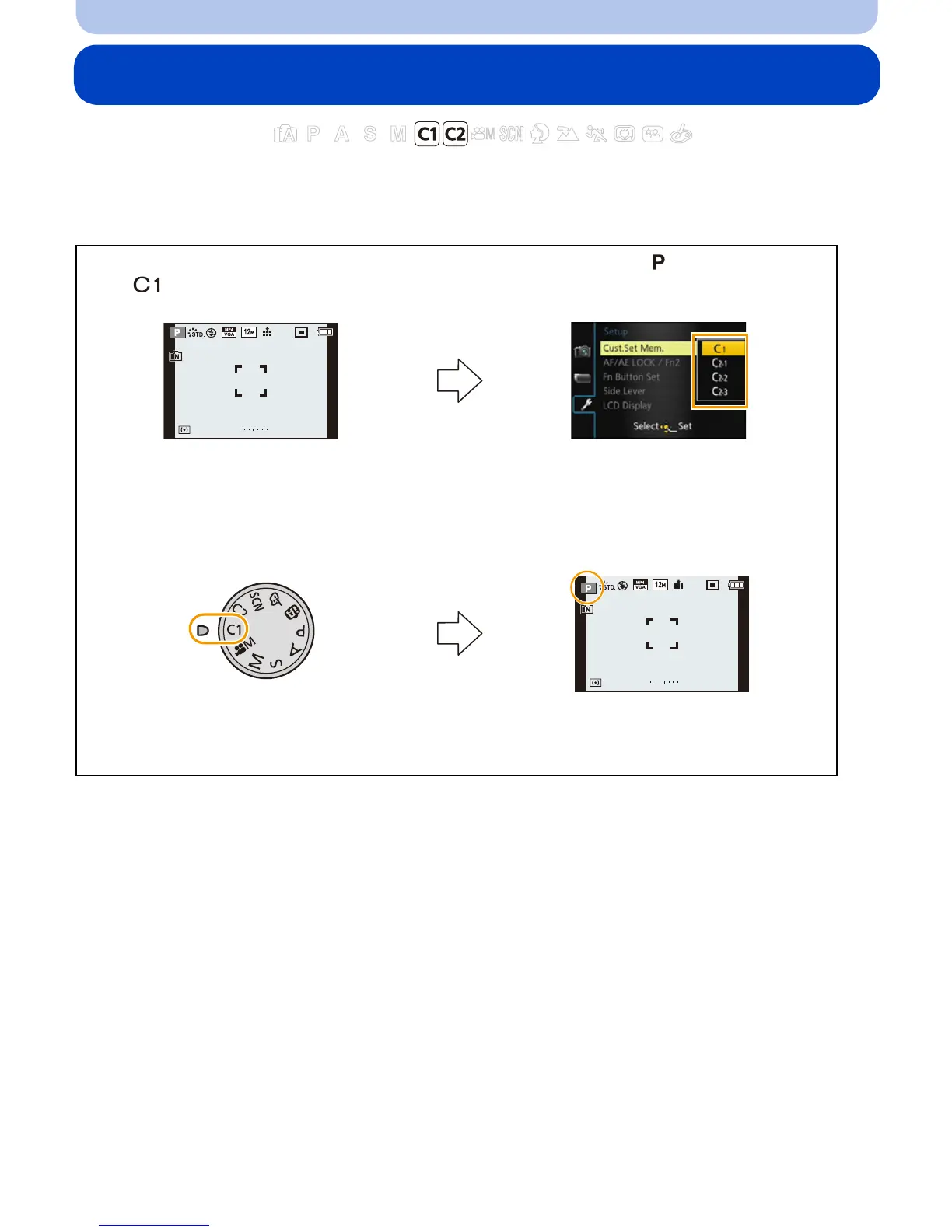 ∫ Example of registering the settings of the Recording Mode [ ] and menus etc.