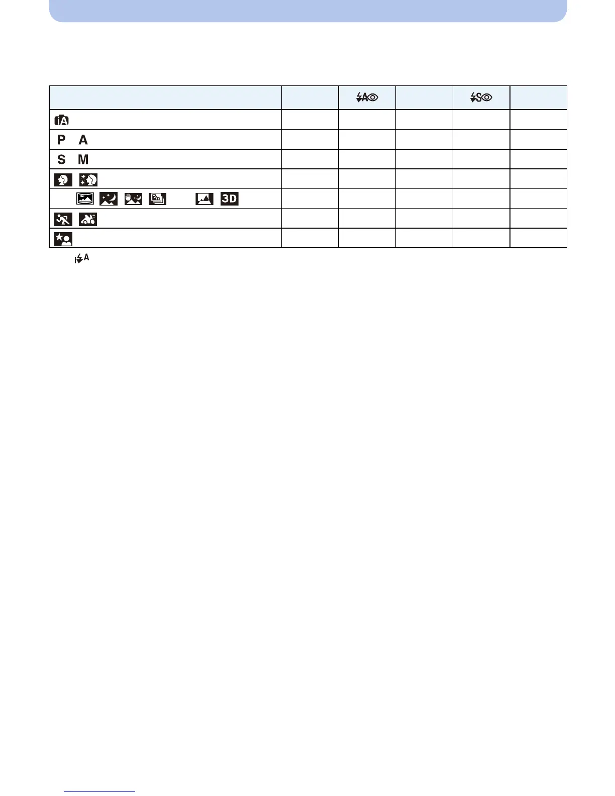 ∫ Available flash settings in Recording Mode