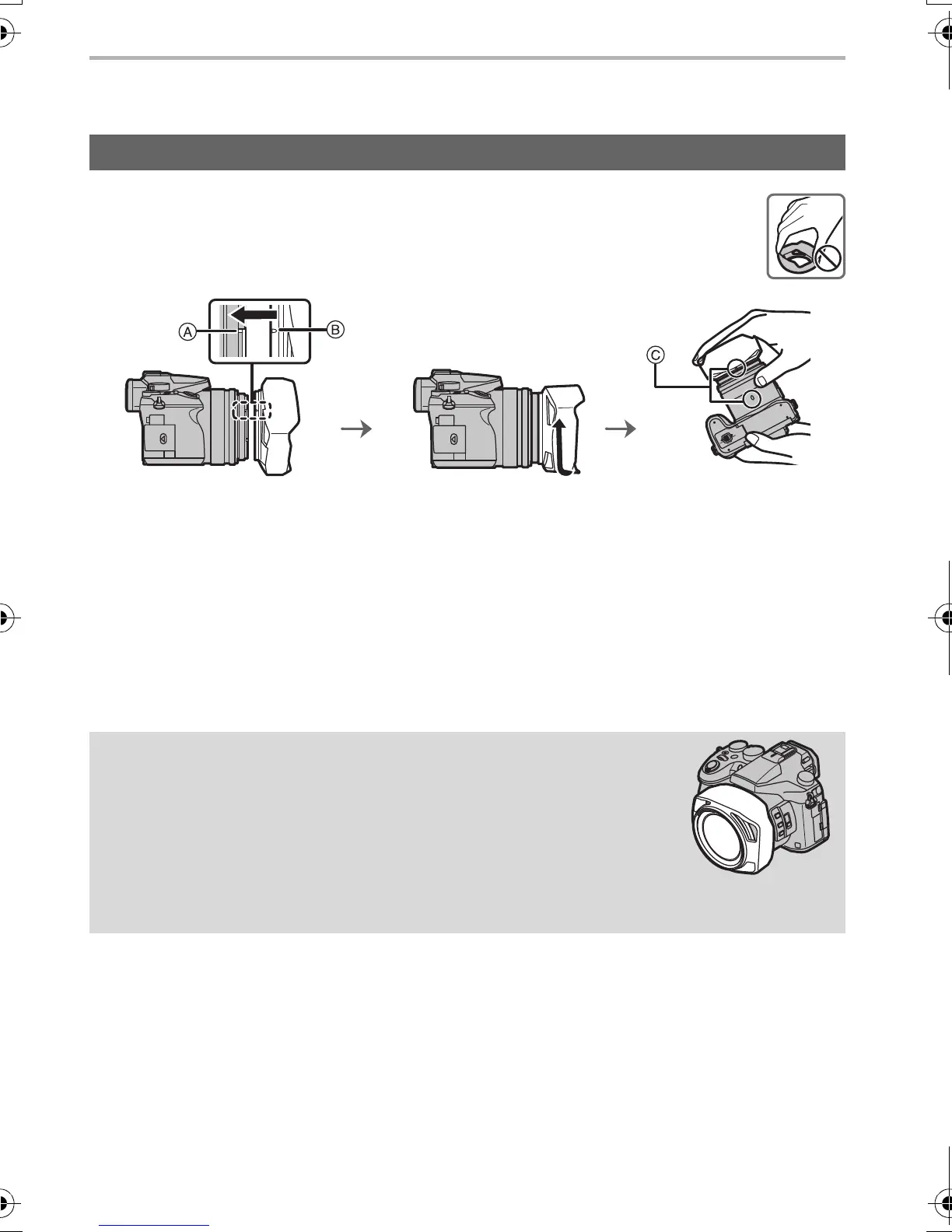 • When temporarily detaching and carrying the lens hood, we