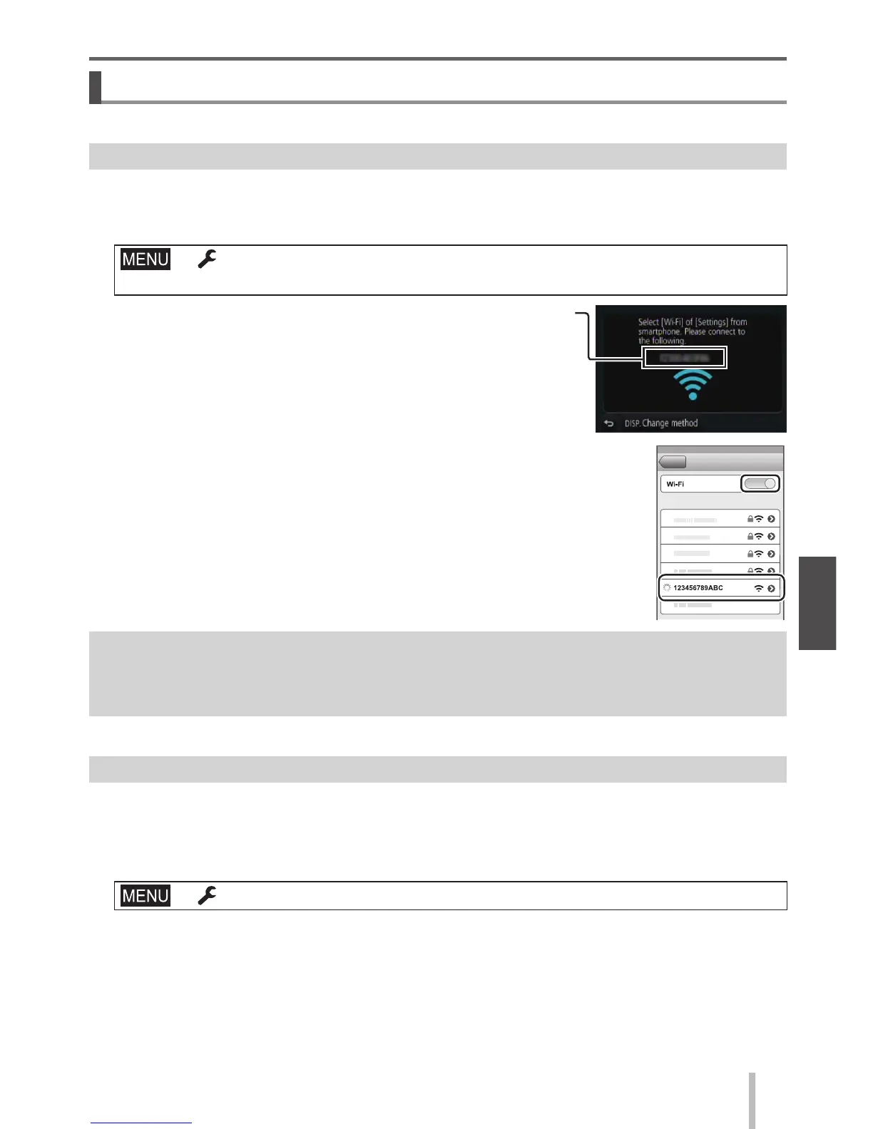 → [Setup] → [Wi-Fi] → [Wi-Fi Function] → [New Connection]