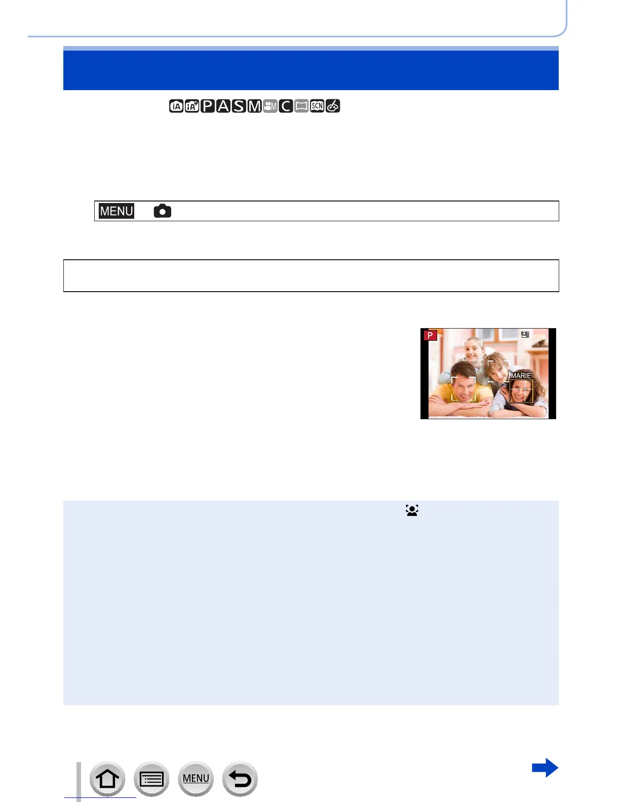 [Face Recog.] functions only when Auto Focus mode is set to [ ].
