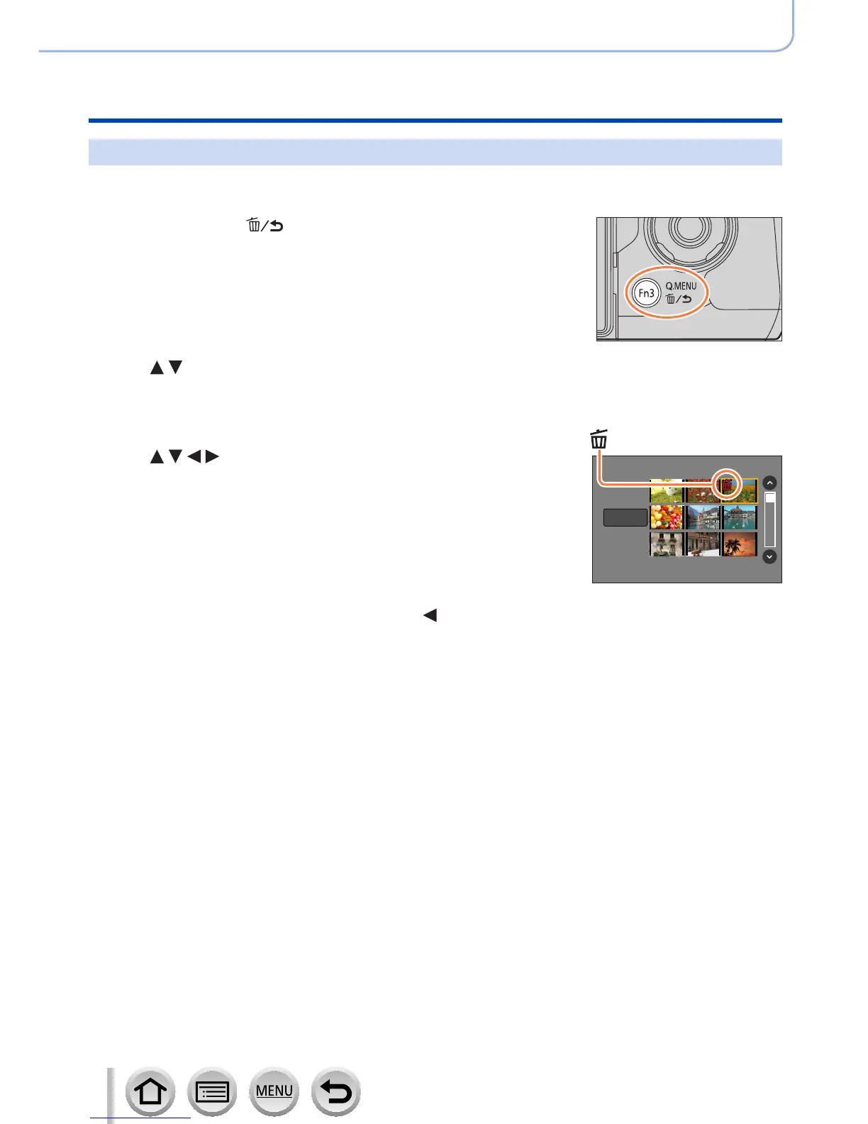 Use to select [Delete Multi]/[Delete All] and press [MENU/SET]