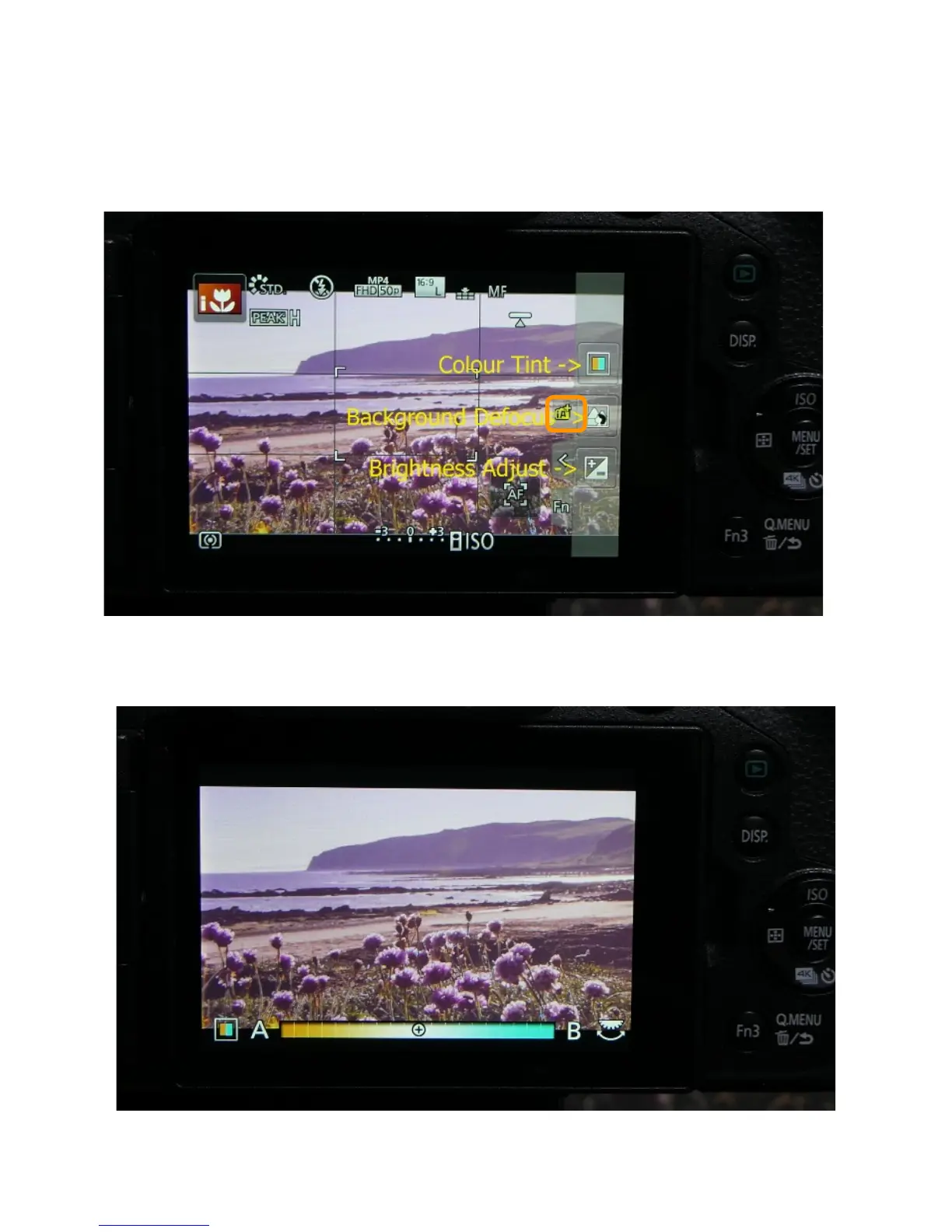 The colour tint control allowing a warmer or cooler image to be selected!