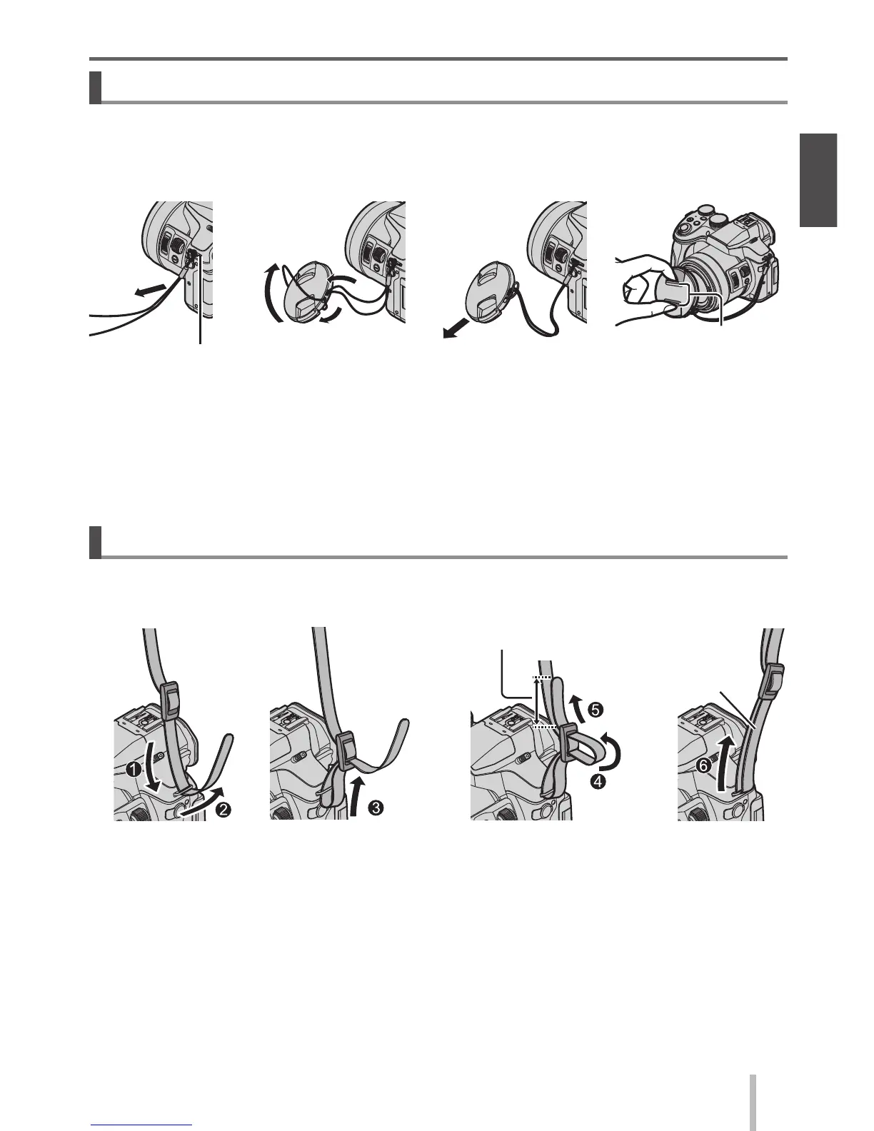 • Be careful that the lens cap string does not become entangled with the shoulder strap.