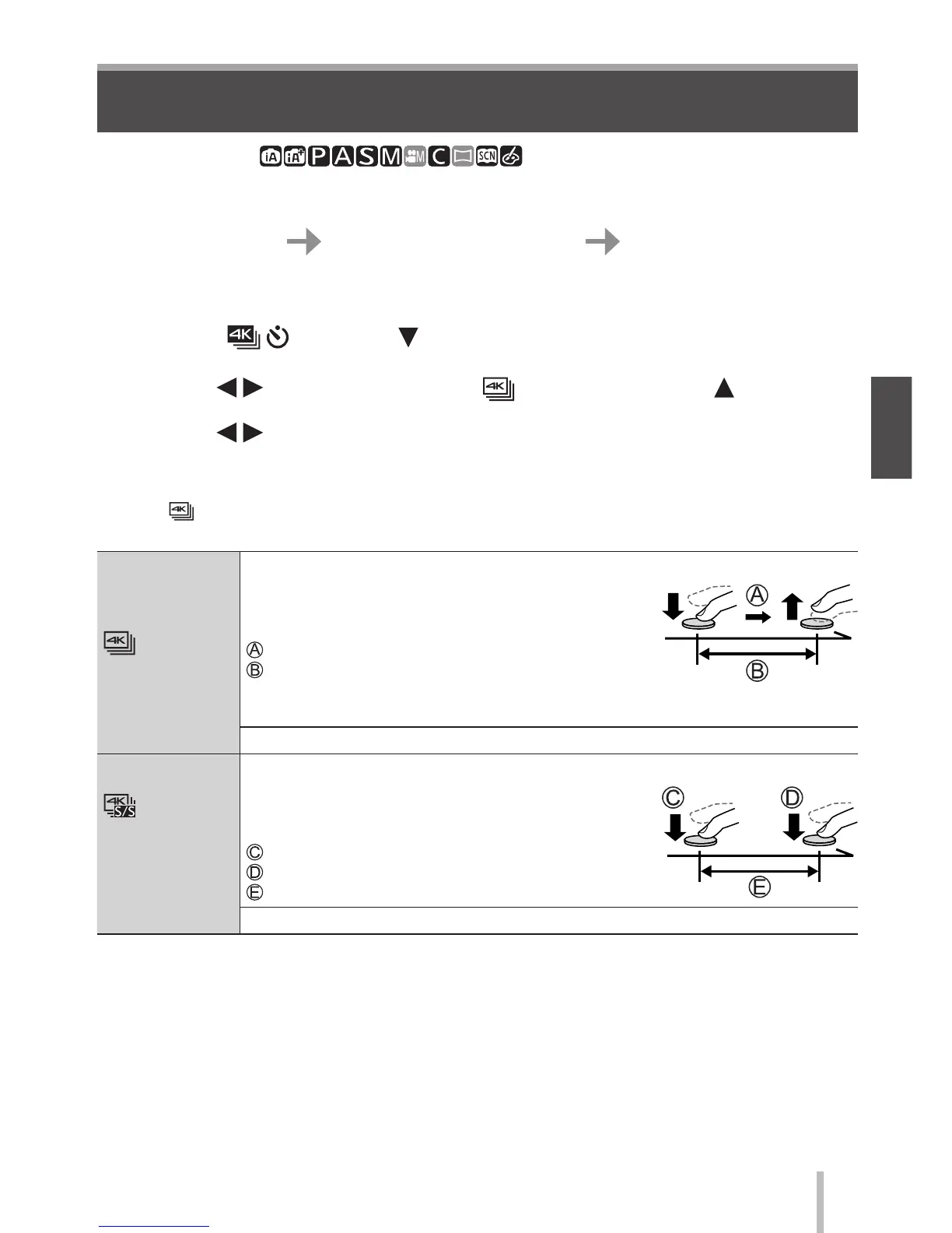 • Settings will be optimised for 4K photo recording. The recording method is set to