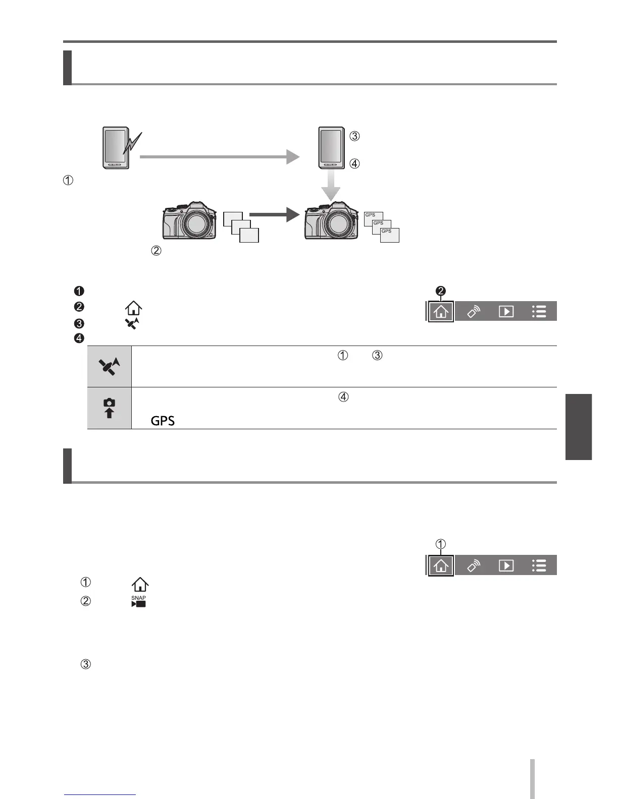 You can send the location information acquired from a smartphone to the camera. After