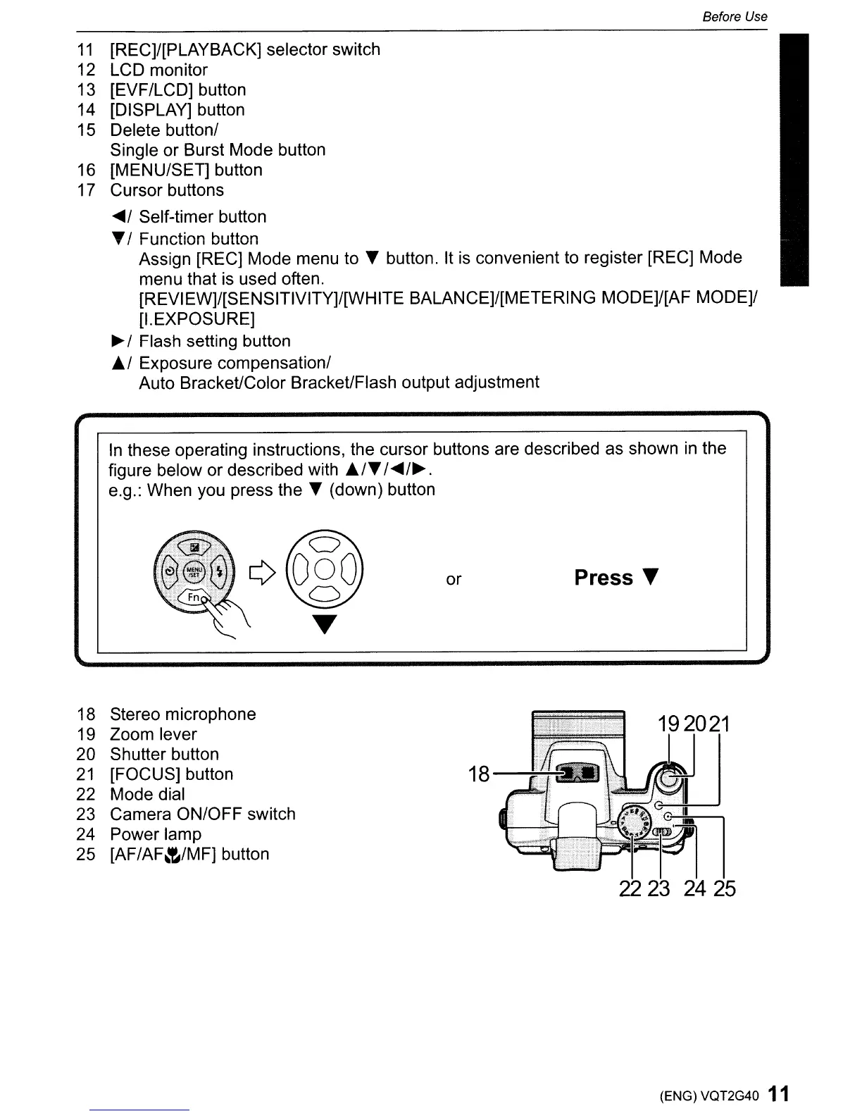 [REVIEW]/[SENSITIVITY]/[WHITE BALANCE]/[METERING MODE]/[AF MODE]I