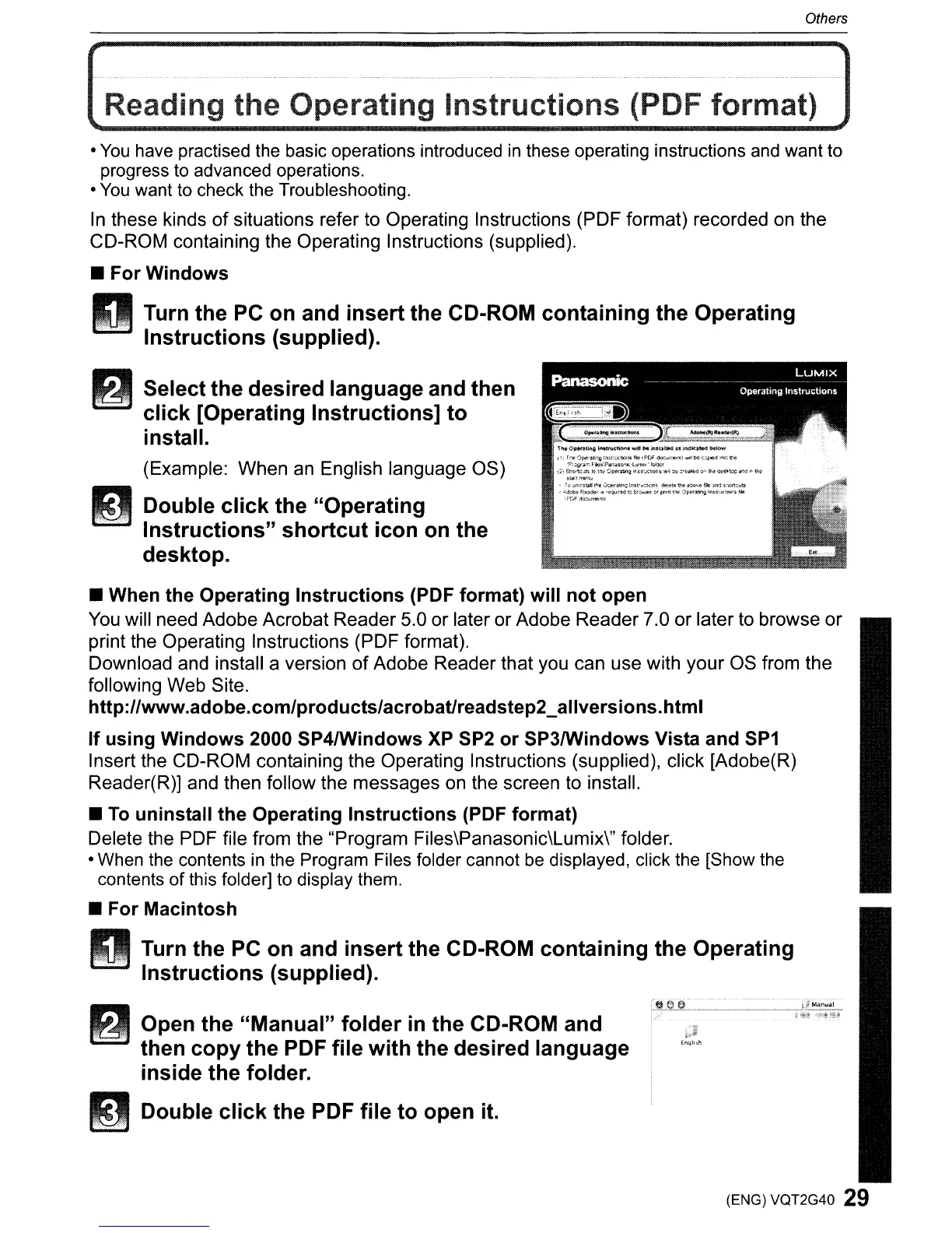 Insert the CD-ROM containing the Operating Instructions (supplied), click [Adobe(R)