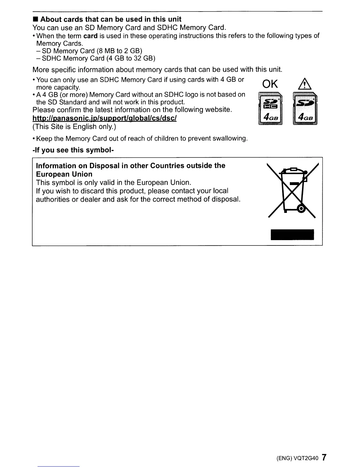 • Keep the Memory Card out of reach of children to prevent swallowing.