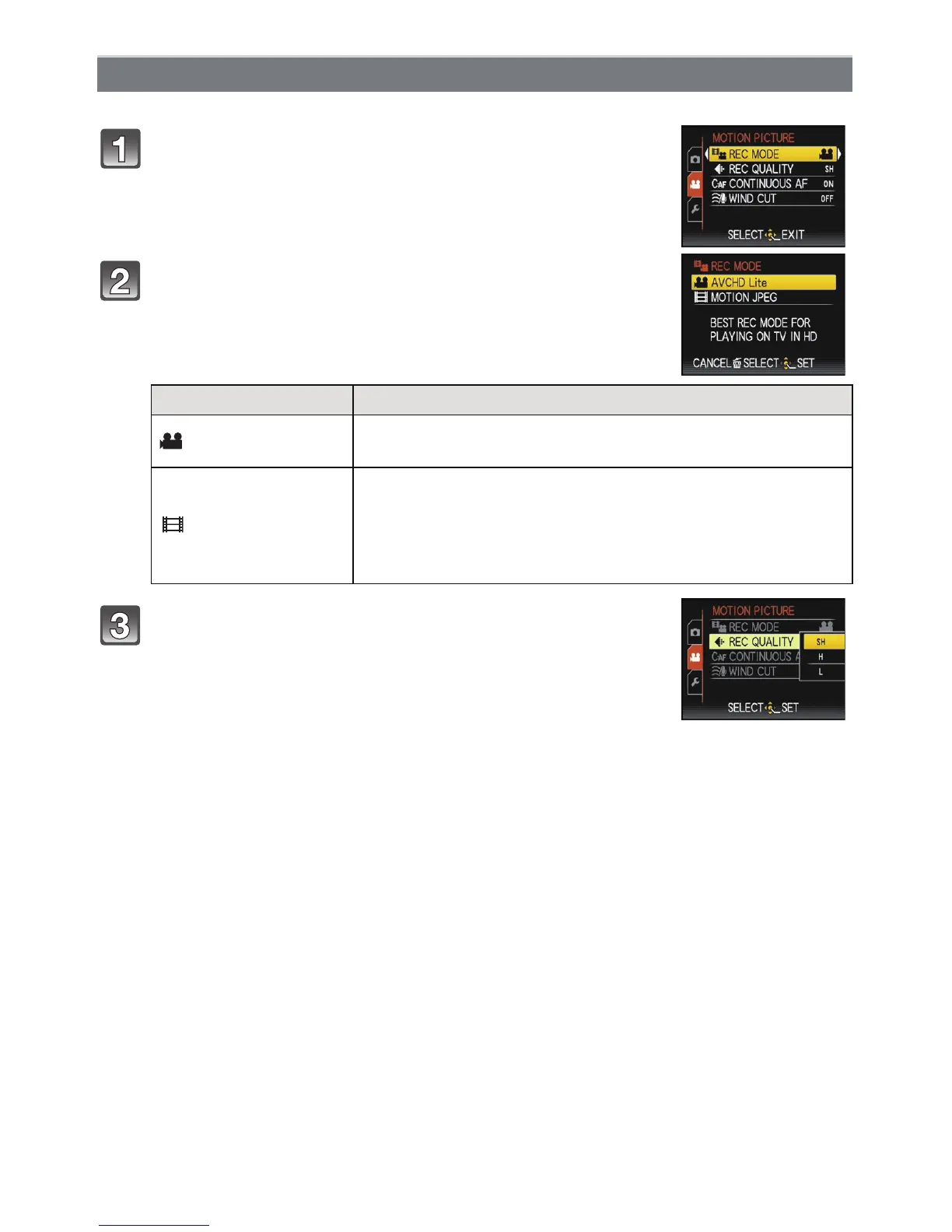Select [REC MODE] from the [MOTION PICTURE]