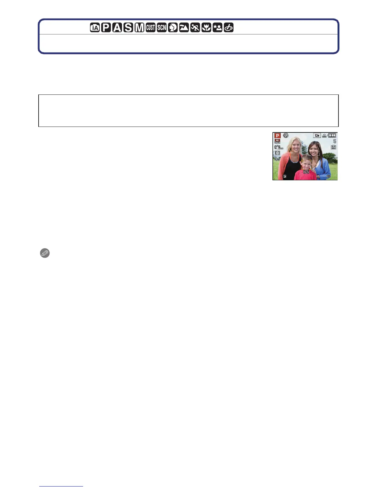 • [FACE RECOG.] can be used in the following Advanced Scene Modes and Scene Modes.