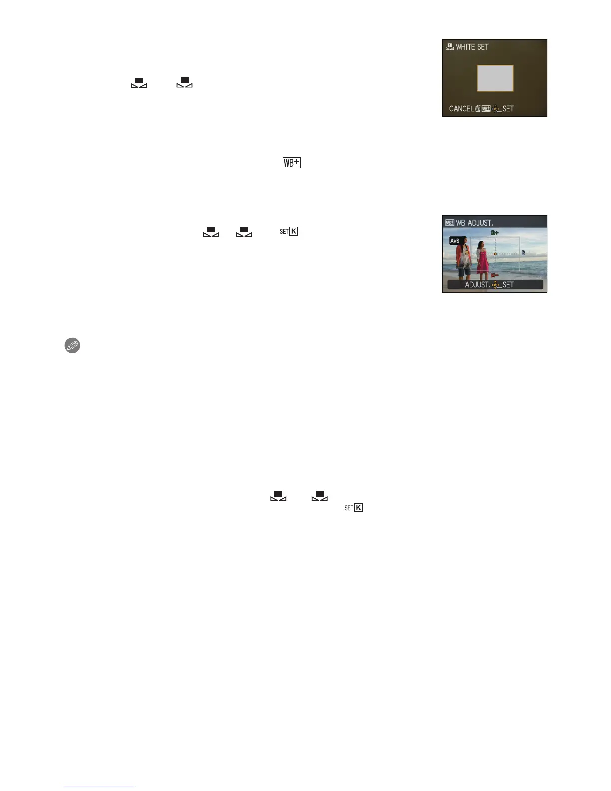 • If you finely adjust the white balance to G_ (green) or M` (magenta), [_] (green) or [`]