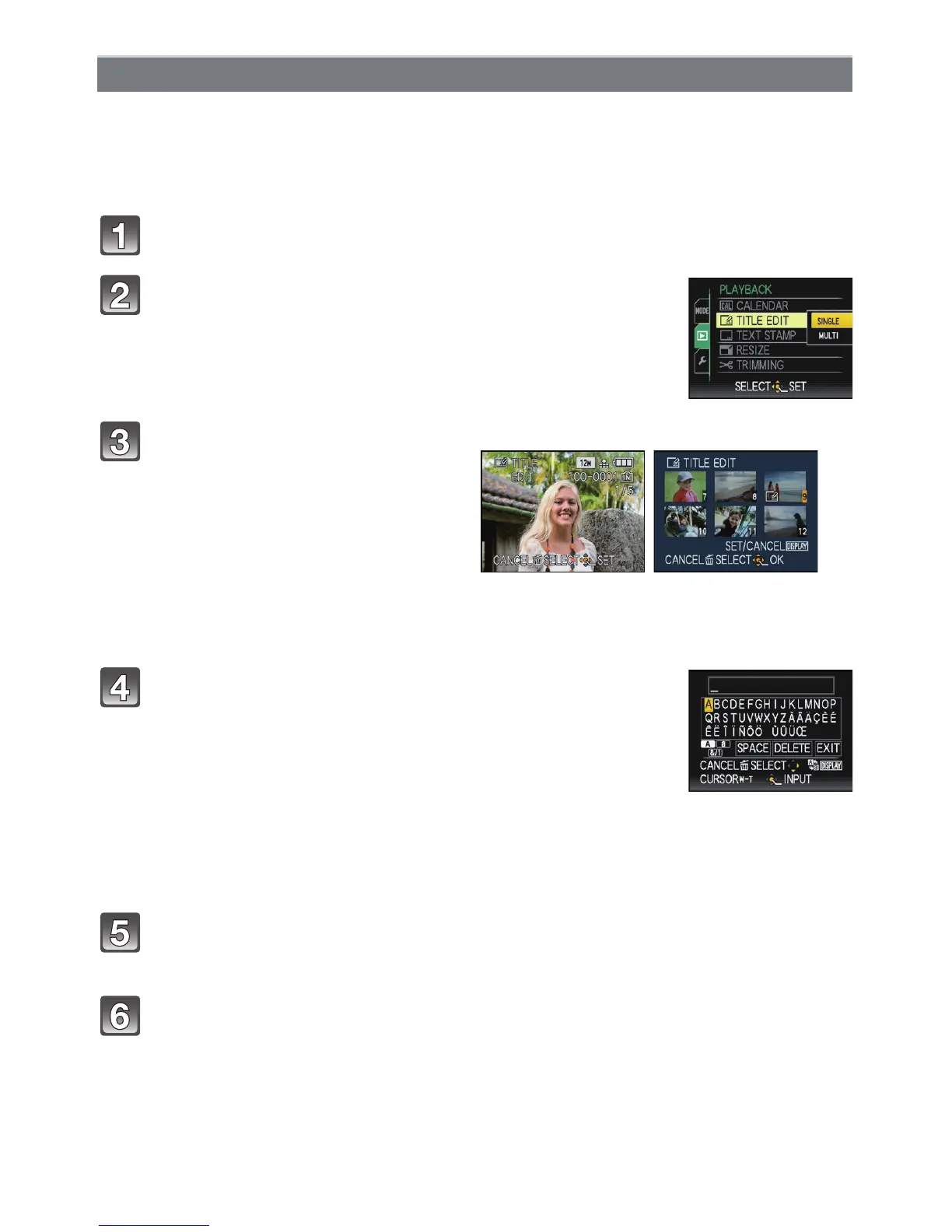 Select [TITLE EDIT] on the [PLAYBACK] Mode menu. (P27)