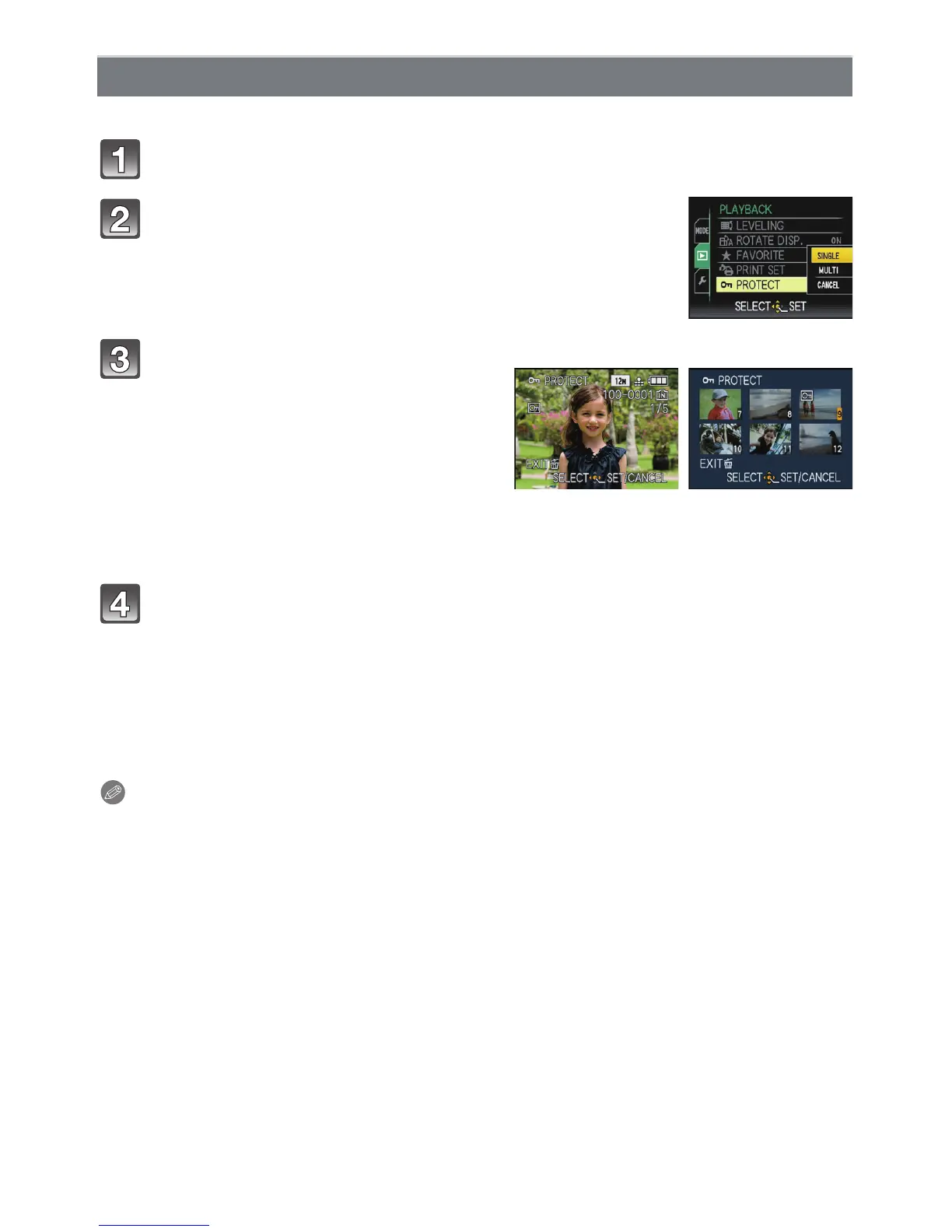 Select [PROTECT] on the [PLAYBACK] Mode menu. (P27)