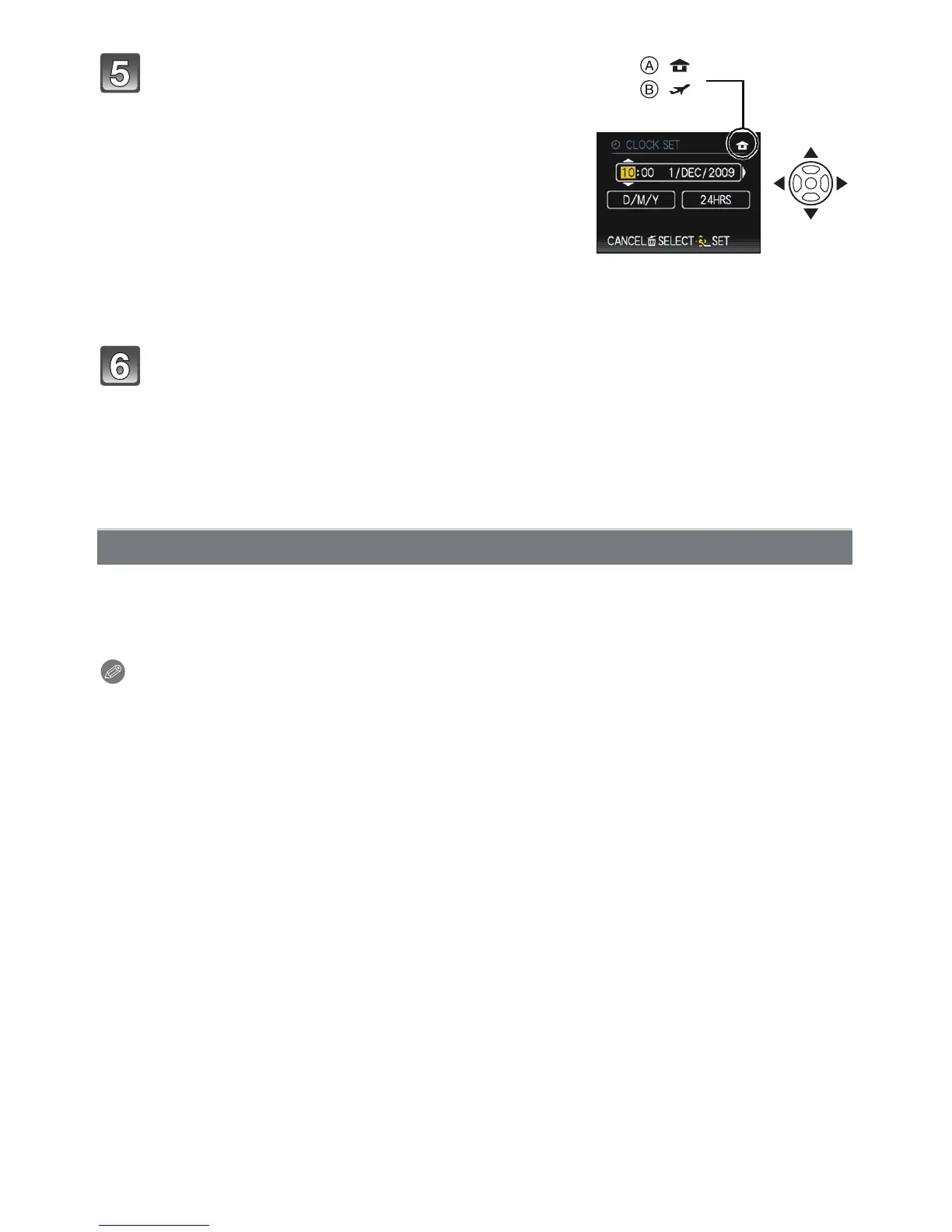 • After completing the clock settings, turn the camera off. Then turn the camera back on,