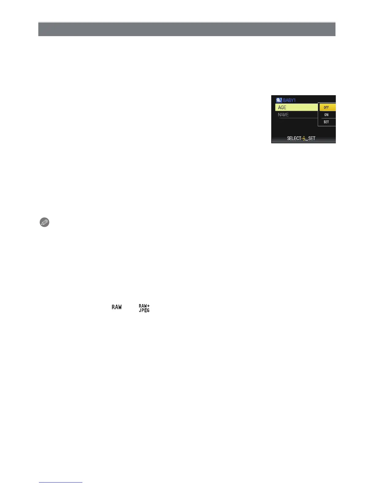 name will not be displayed. Before taking pictures, set [AGE] or [NAME] to [ON].
