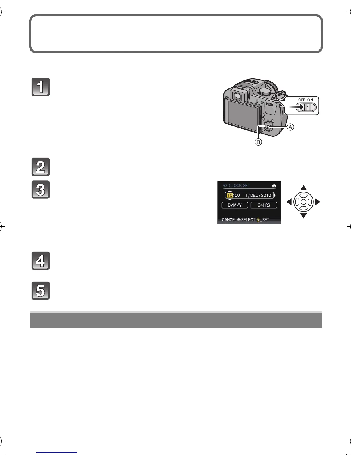 Select [CLOCK SET] in the [REC] or [SETUP] menu, and press 1.
