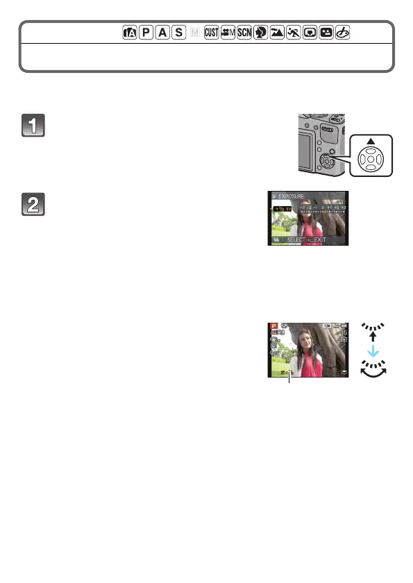 • The exposure compensation value appears