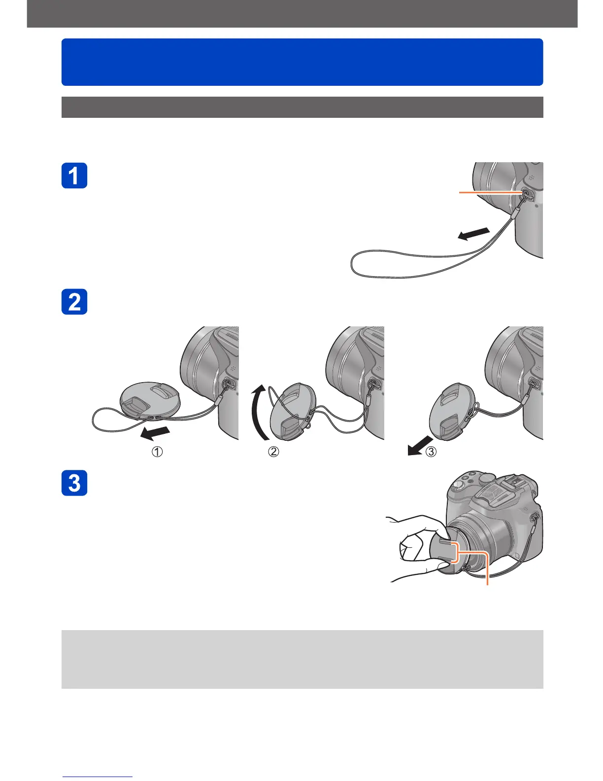 Be careful that the lens cap string does not become entangled with the shoulder strap.