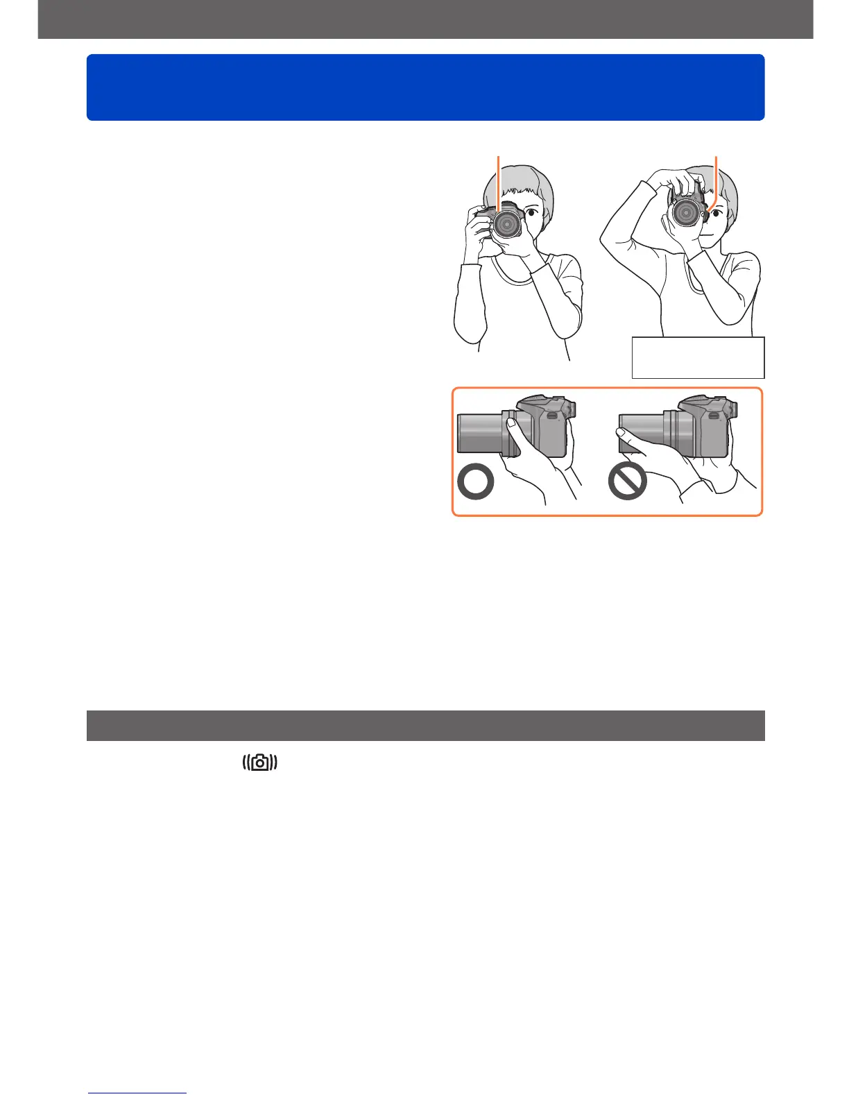 • Do not hold the lens barrel as you take